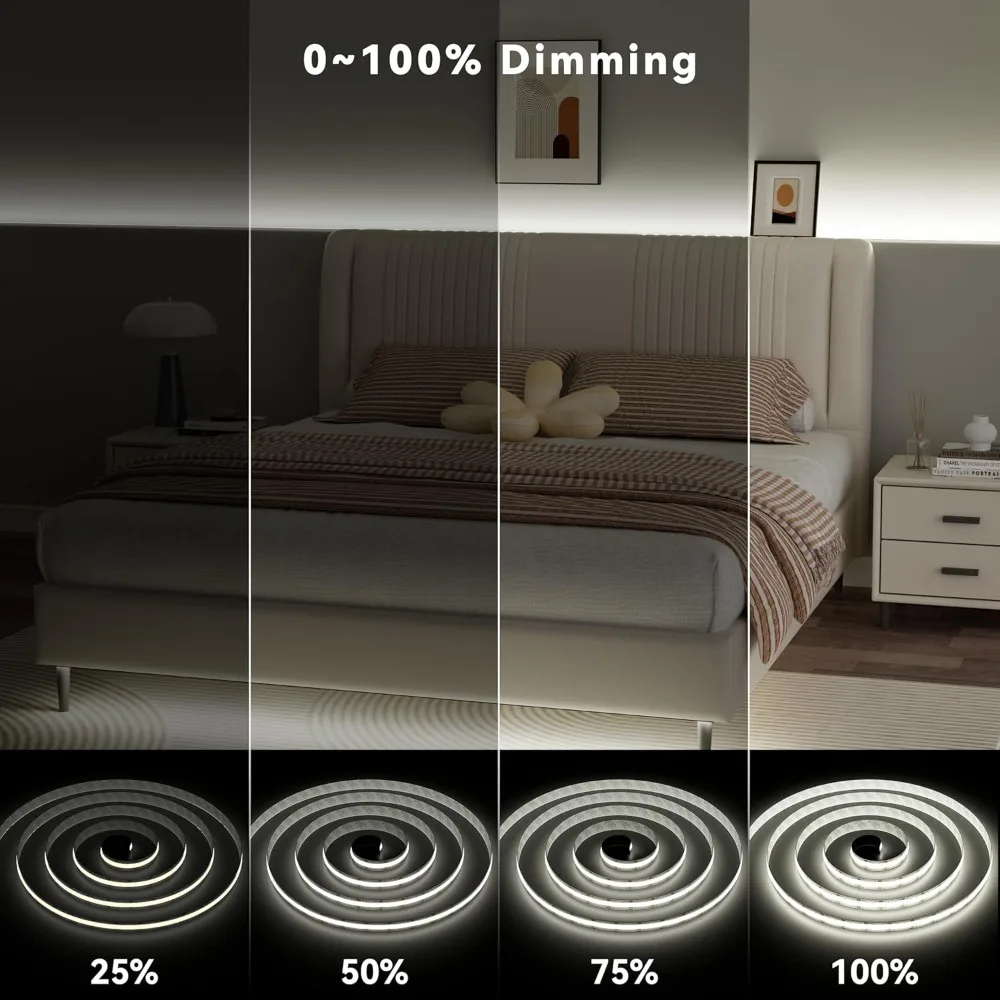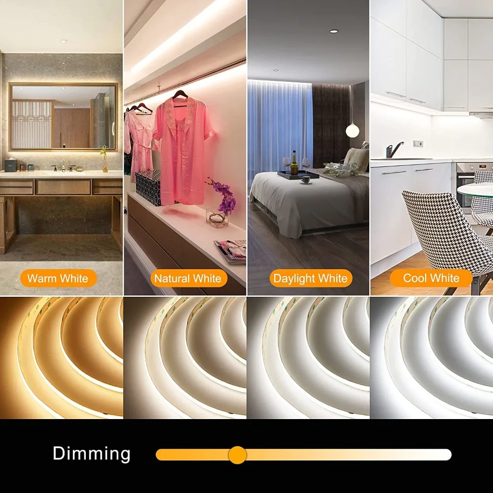 24V FCOB CCT LED Light Strip 608 LEDs 2700K-6500K Color-Changing LED Tape Linear Double Color RA90 Dimmable Ribbon Home Decor