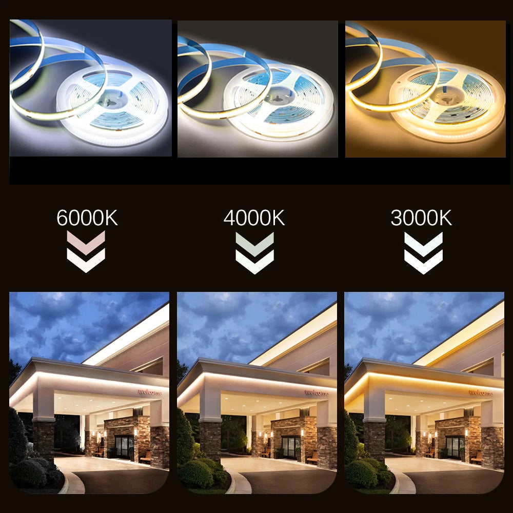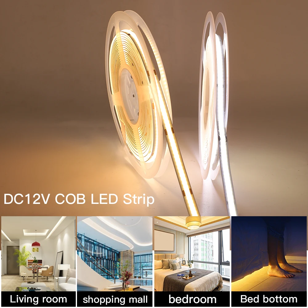 COB LED Strip Light 320 384 480 528 LEDs High Density Flexible COB FOB LED Light RA90 LED Tape Ribbon Linear Dimmable DC 12V 24V