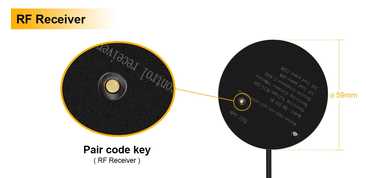 3. If the "receiving host" is powered on, after 8 seconds, first press the code matching key on the "receiving host", then press and hold the pair code key on the back of the "wireless sensor switch" until the LED light strip flashes once, and the pairing is completed.