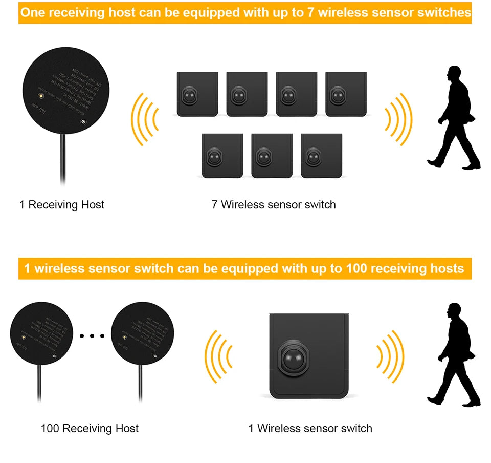 3. One receiving host can be equipped with up to 7 wireless sensor switches at most.