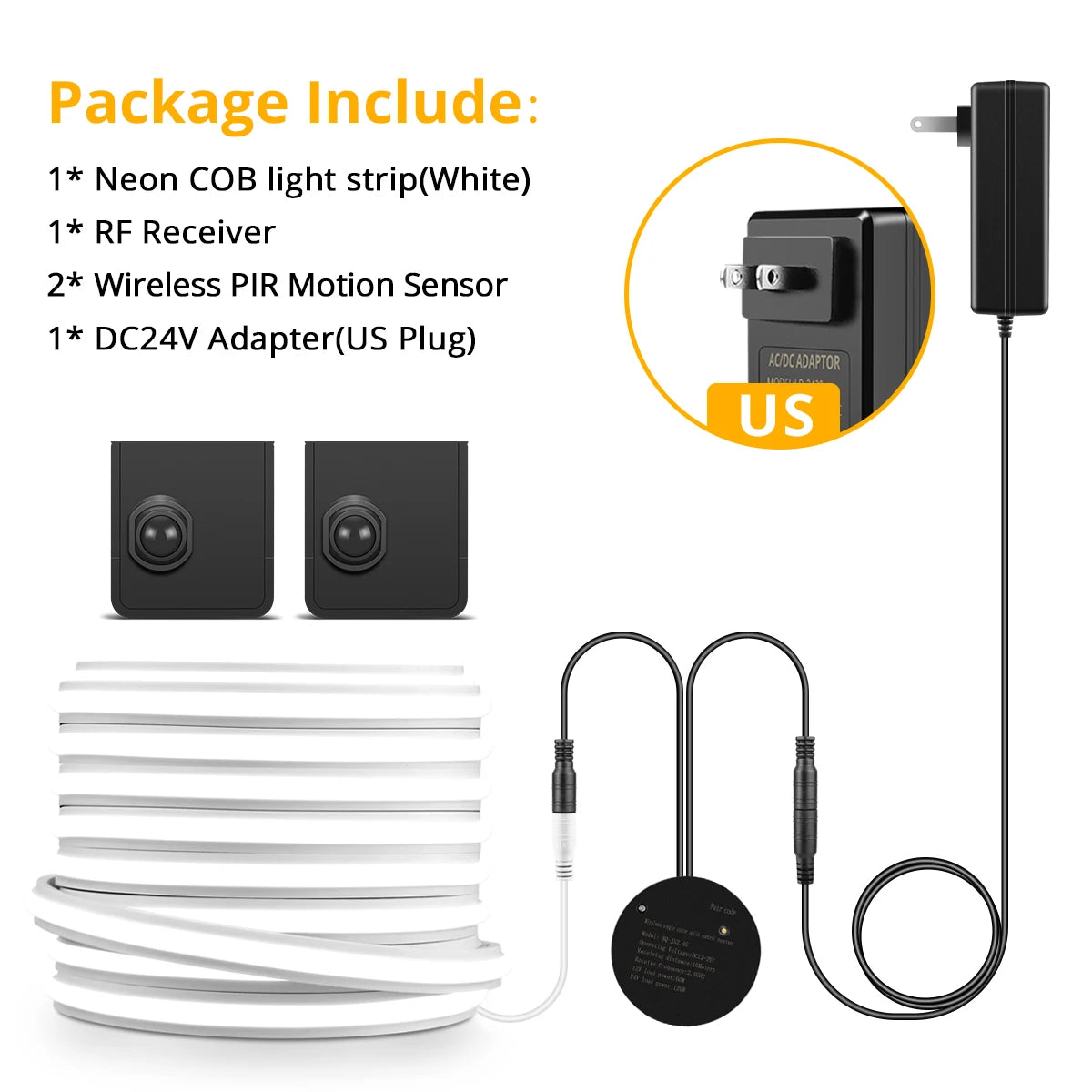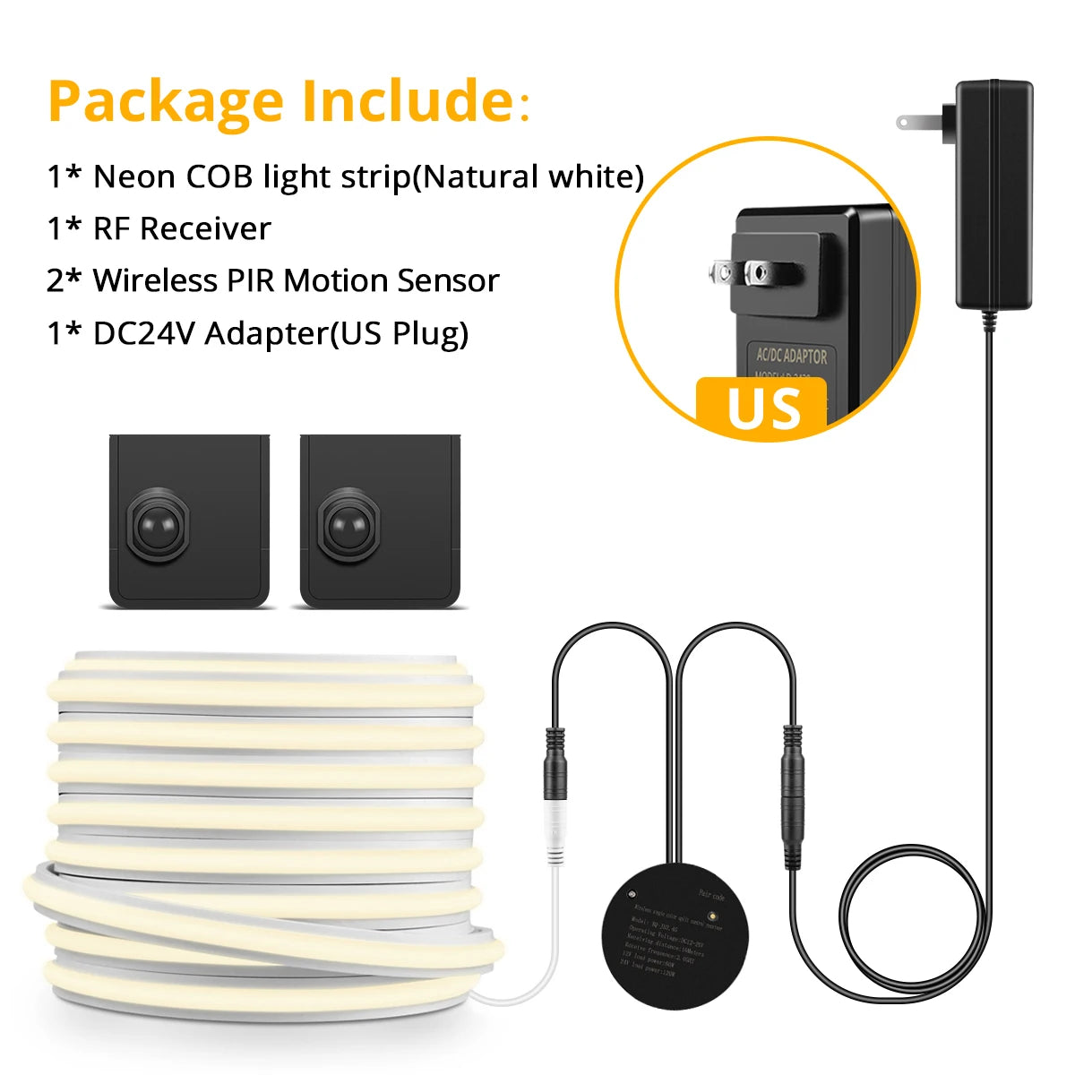 Product Name: Wireless PIR Motion Sensor COB Neon Strip (The Sensor Build-in 450mA Battery)