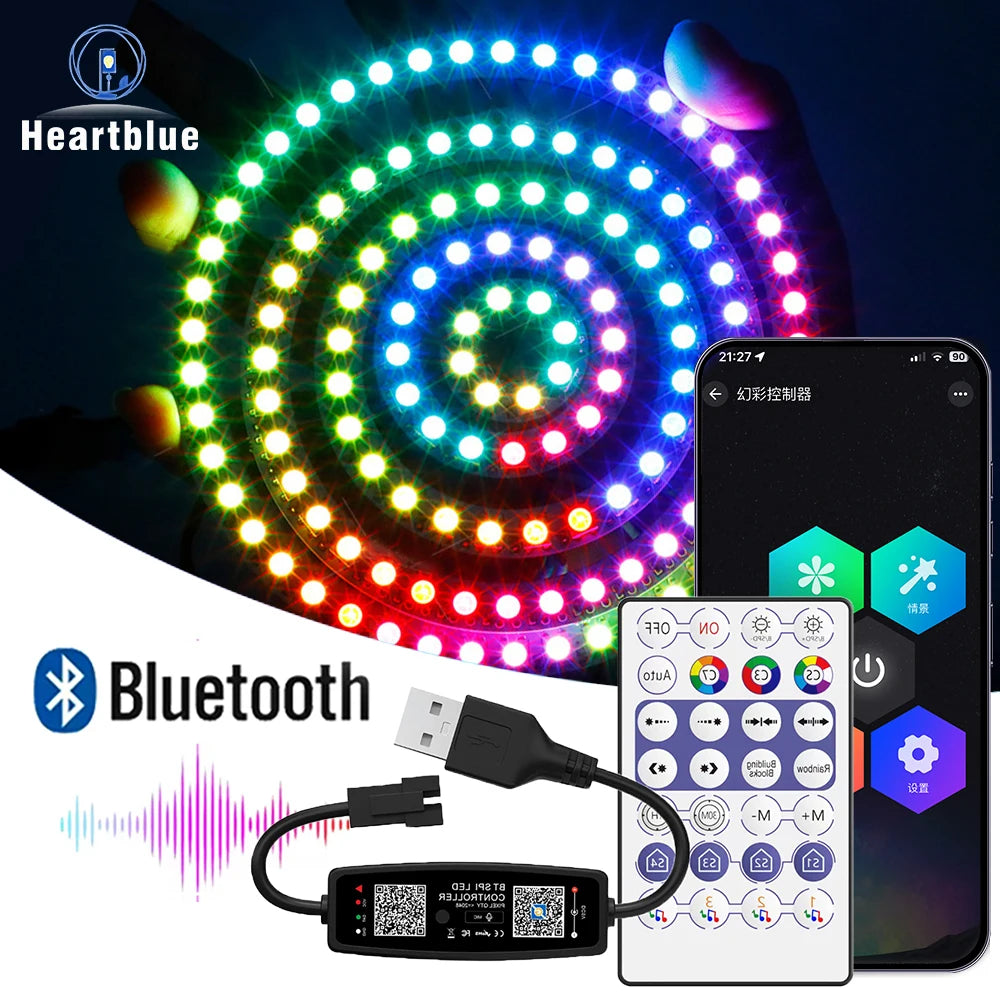 USB RGB Led Ring WS2812B With 28Keys BT Music Controlle kit DC5V 5050 BuiIt in Individually Addressable 8/16/24/35/45 Pixels LED