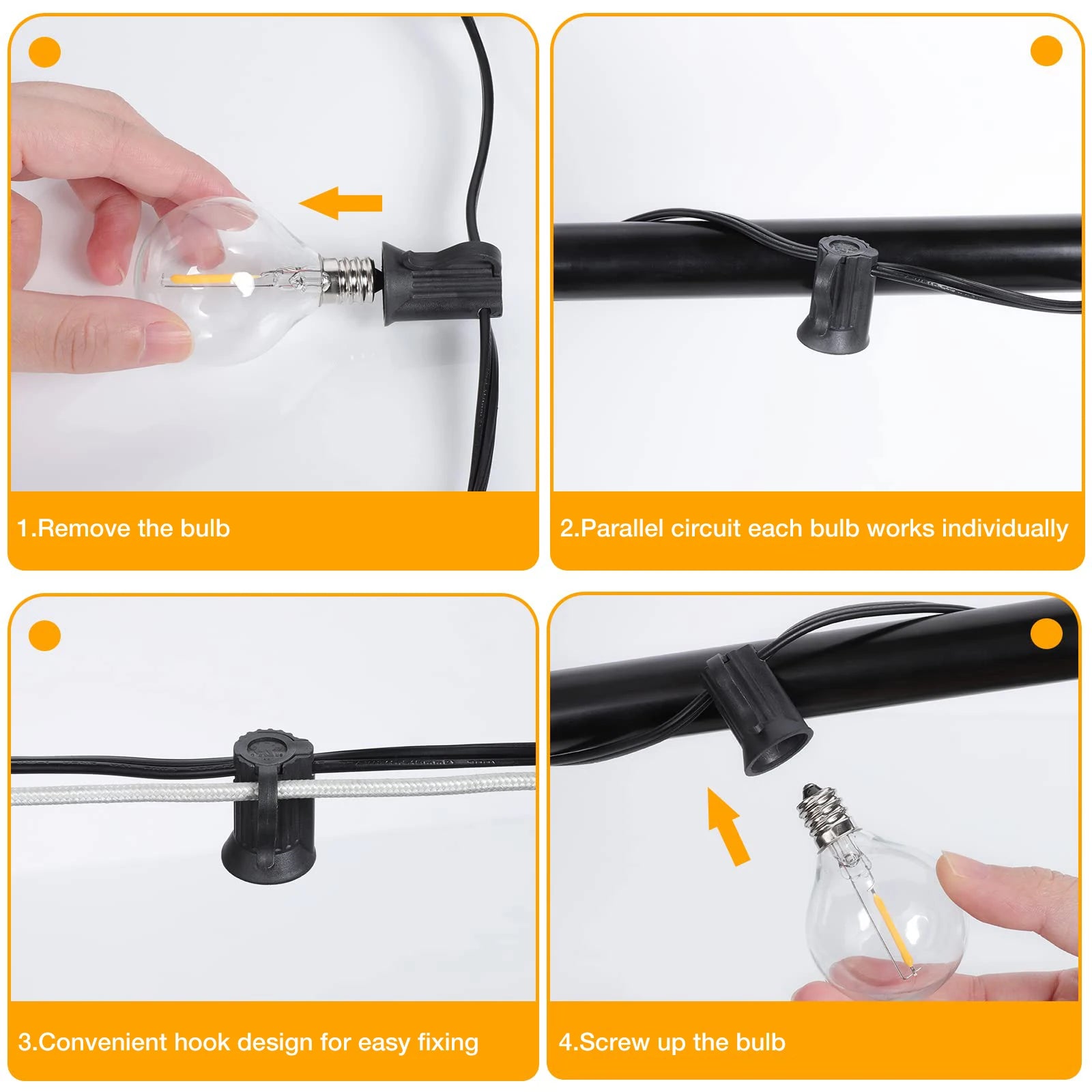 • Easy to install: each G40 bulb has a clip on the side. They can be easily attached to trees, slatted fences or stair railings. Simply plug & play when you need multiple stands.