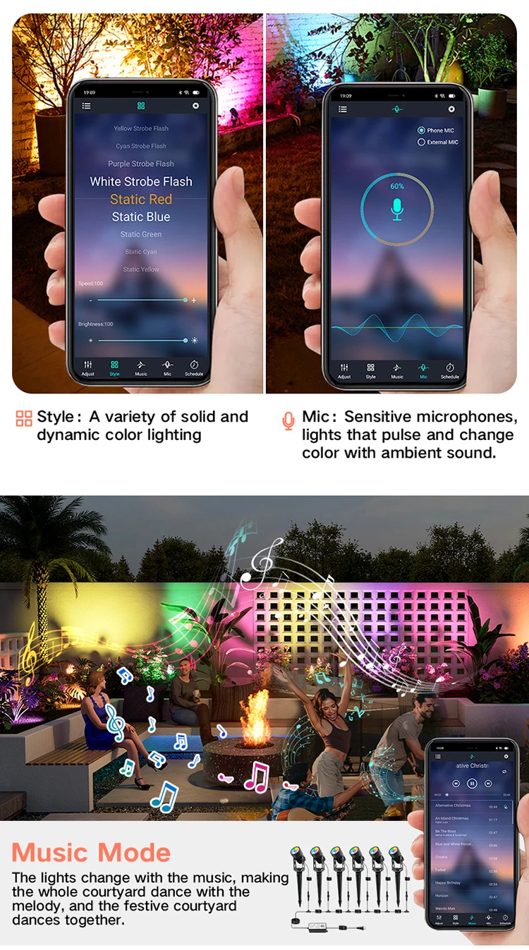 2/4/6/8PCS RGB Smart App LED Garden Lights Mini Spike Ground Spot Decorative Garden Lighting