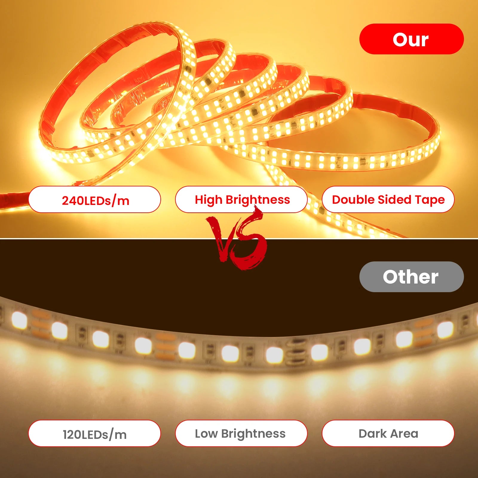 230V 240LEDs/m Strip Light with IC 220V 5m 10m 20m 30m 2835 Waterproof Flex Adhesive Tape Ribbon 2pin Wire Switch Power Kit 10CM Cut