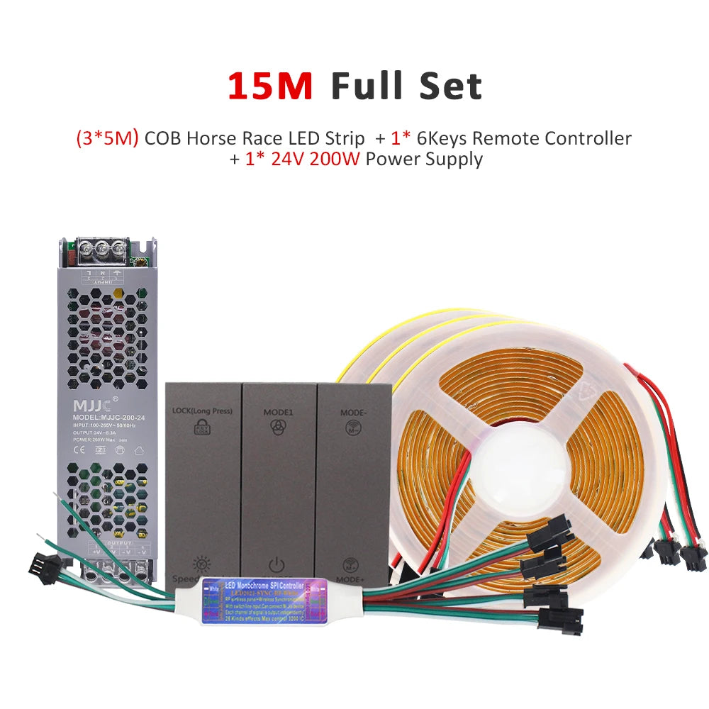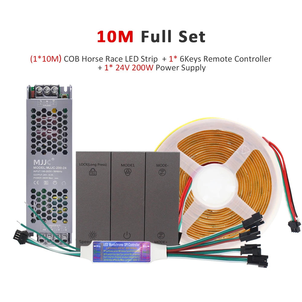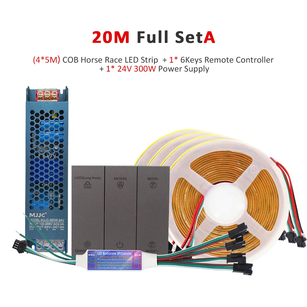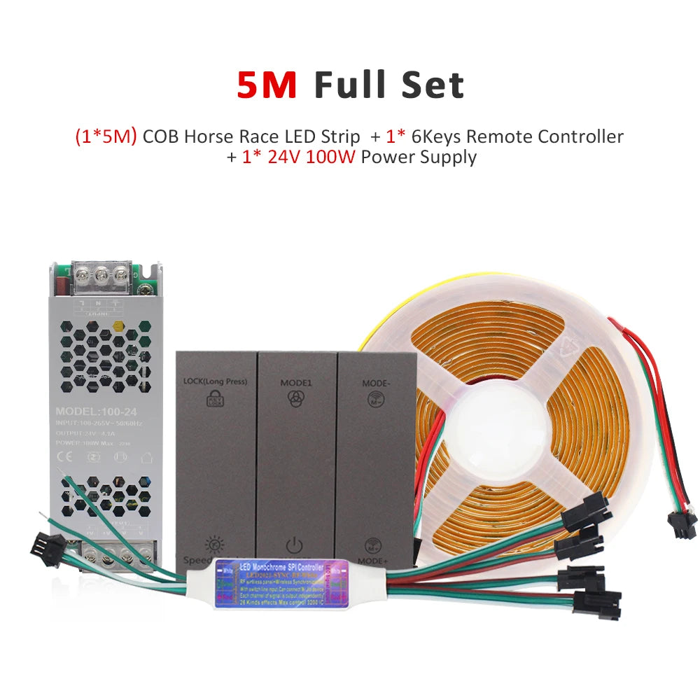24V Horse Race Running Water Strip Light COB Flexible Ribbon 5M 10M 15M 20M Tape Lamp Work with Smart Switch Control Controller