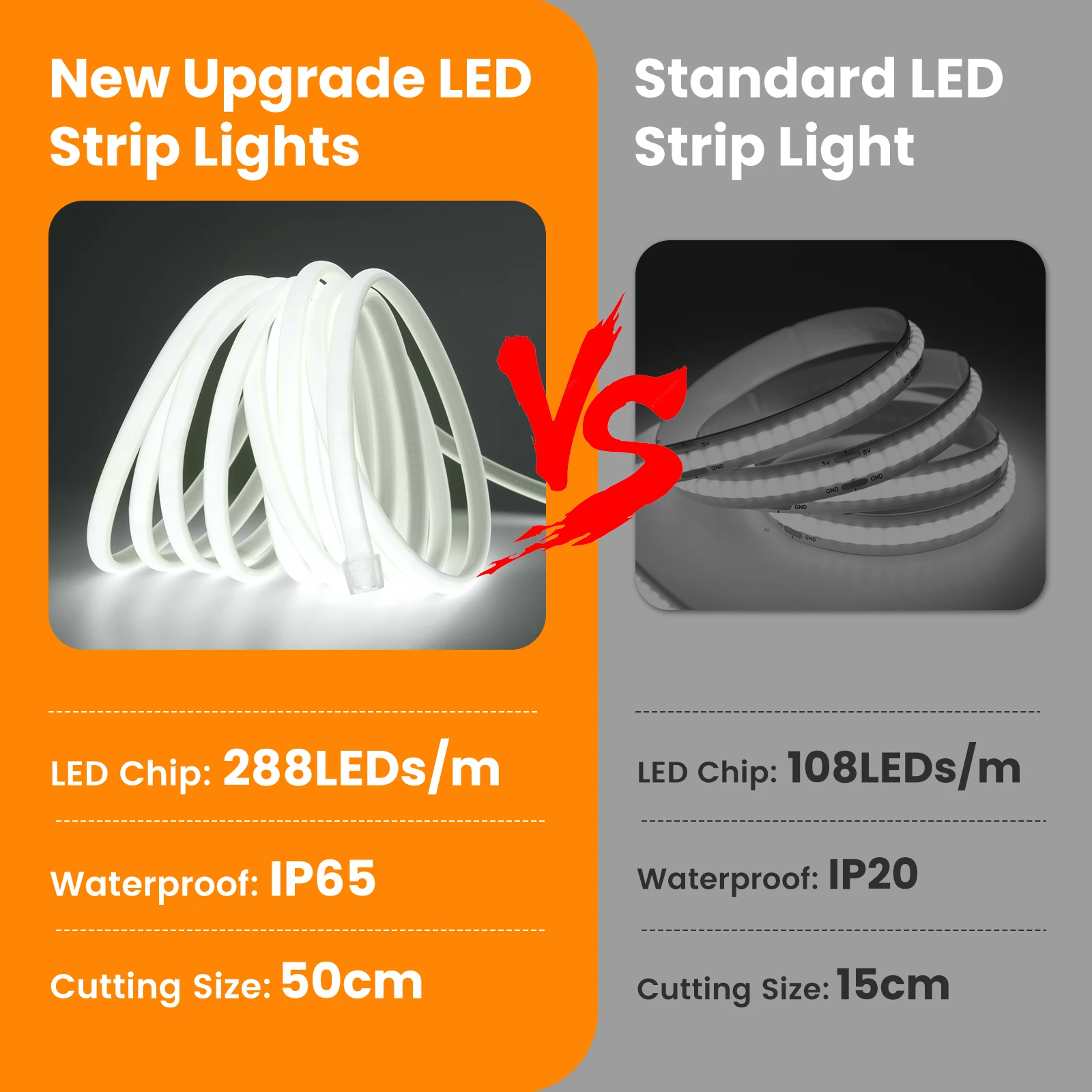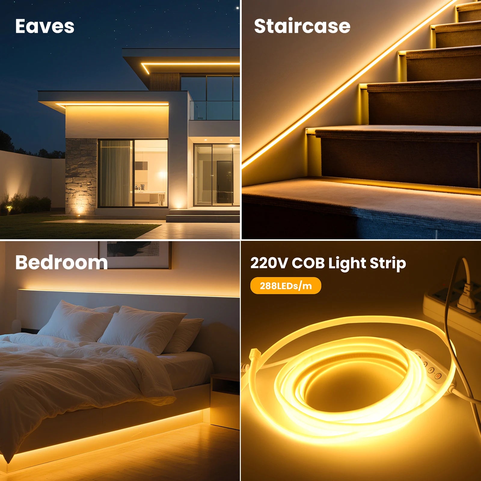 AC 220V/110V Timing Dimmable COB Neon Strip EU/UK/US Kit 288LEDS/M Waterproof 3000K/4000K/6000K Flexible Light for Home Decor