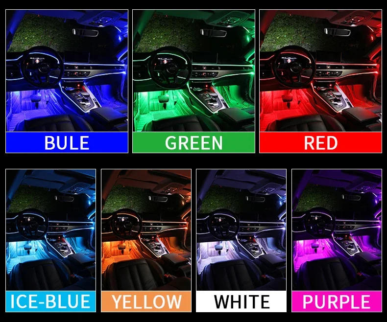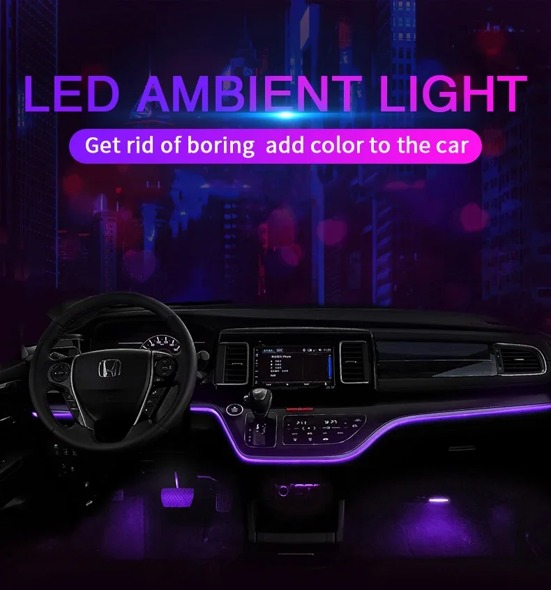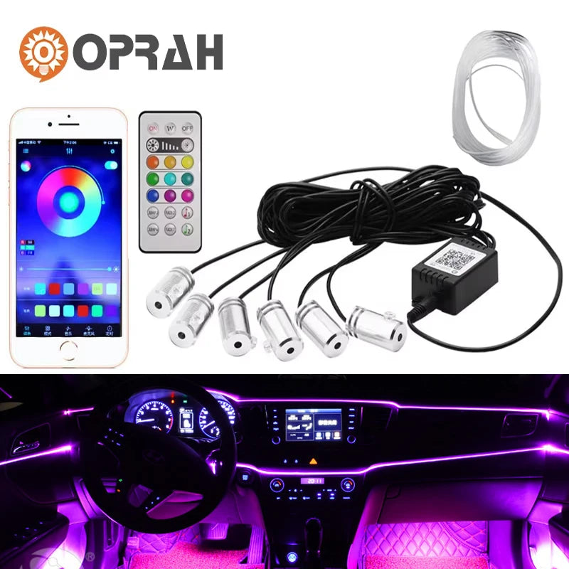 4/5/6 In 1 Car Ambient Decoration Lamp RGB Fiber Optic Neon Flexible App Remote Control Car Interior Ambient Strip USB 8M 12V