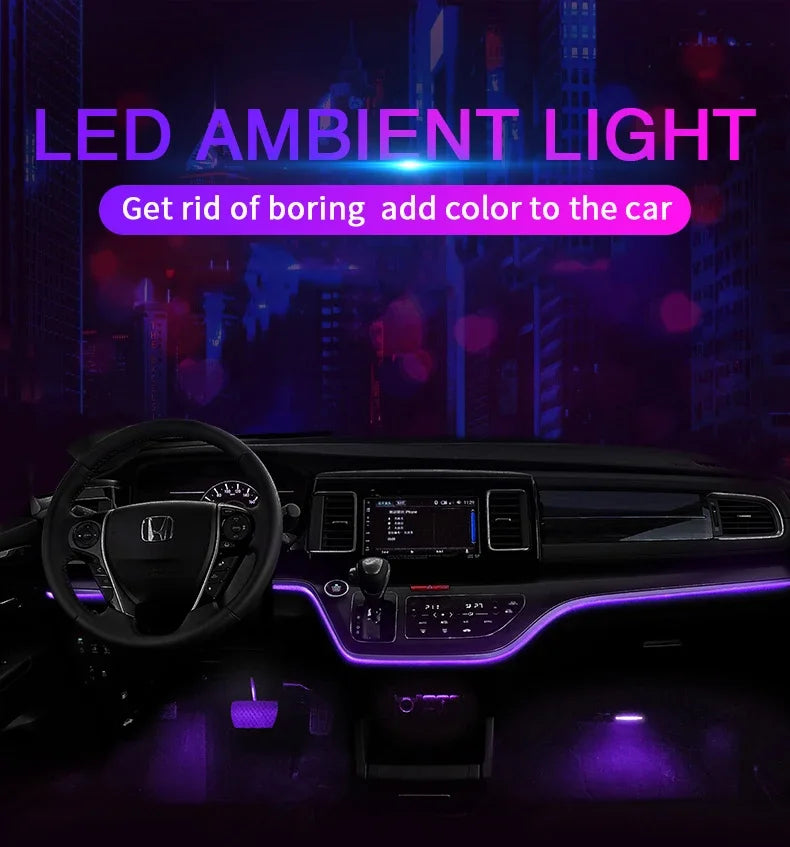 Car Ambient Decoration Lamp RGB Fiber Optic Neon Strip