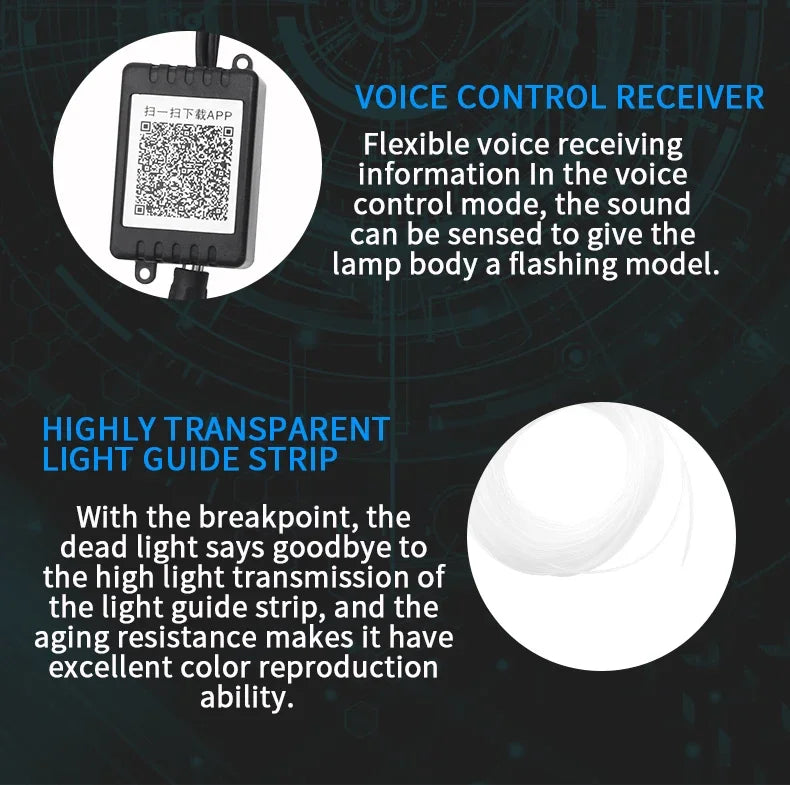If the length of a section of optical fiber used during installation is long, it is recommended to install a light strip (RGB LED beads) at each end of the fiber to increase the brightness.