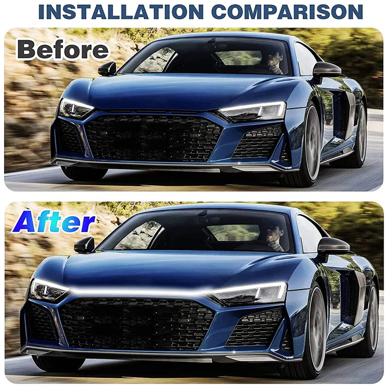 【Dynamic Scan Start Up】 This flexible car hood light strip works automatically in dynamic scan run-through effect.The led hood light strip has a high bright light to enhance driving safety warning in darkness or bad weather, effectively alerting oncoming vehicles and pedestrians and reducing traffic accidents. also can spice up the front end of the vehicle and enhancing the look of your car.