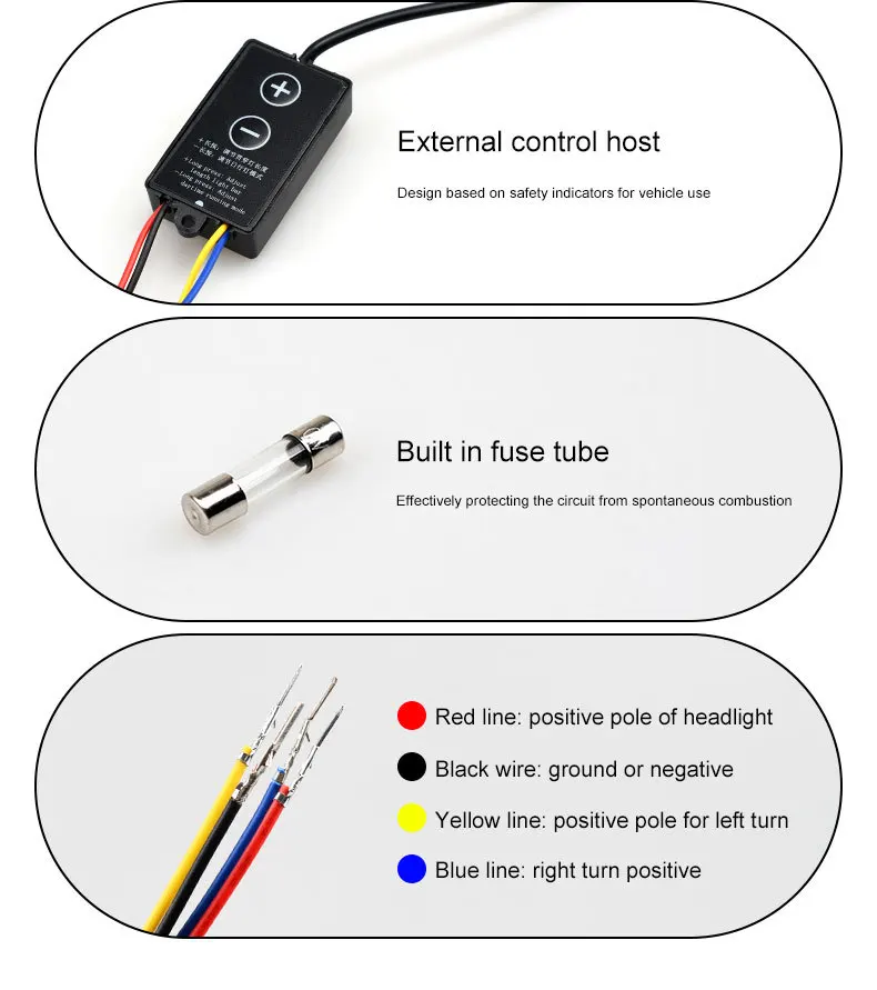 2.Black line connect to negative pole + Red line connect to DRL= Turn on DRL to light up.