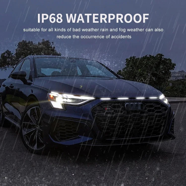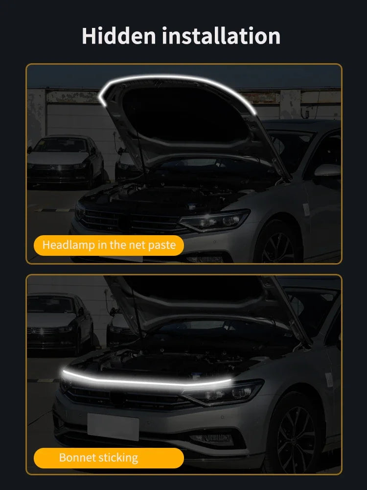 LED Yellow White Car Daytime Running Light Strip Scan Turn Signal Indicator Headlight Car Hood Decorative Light Universal 12V