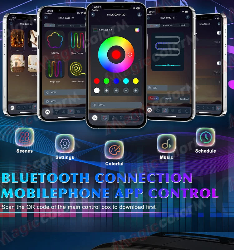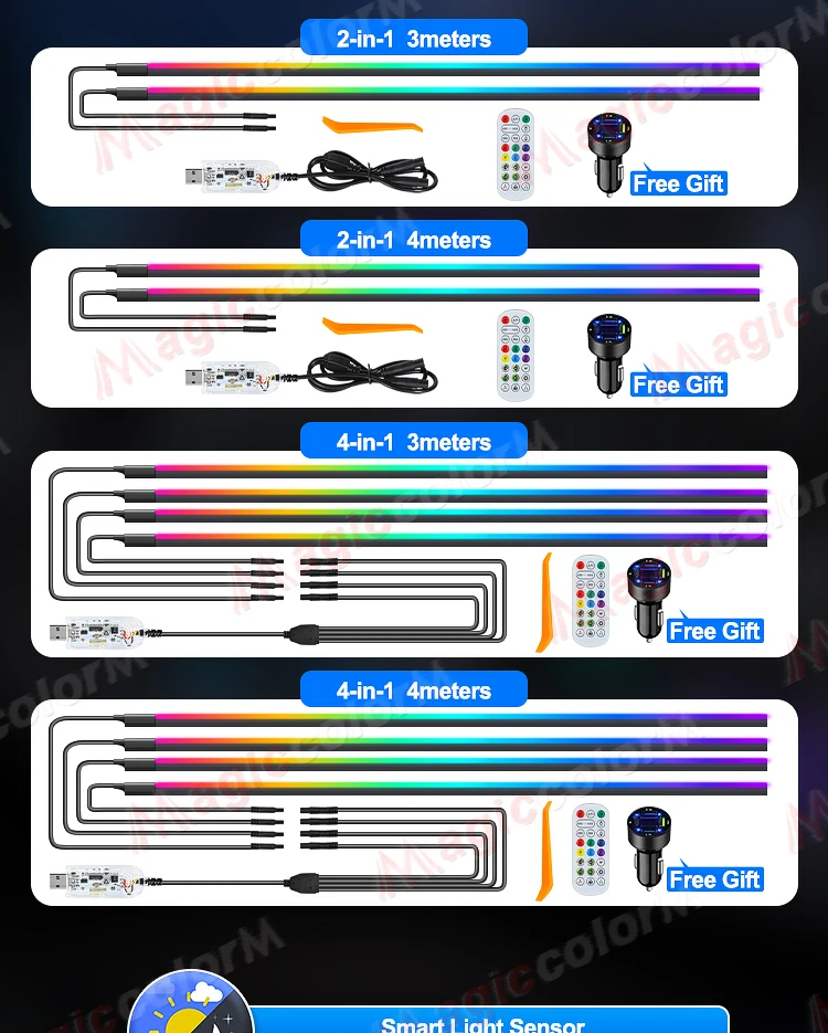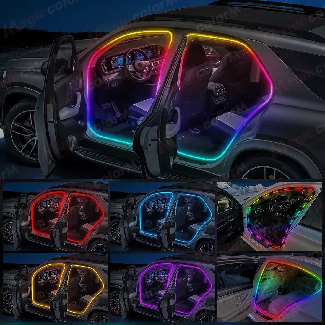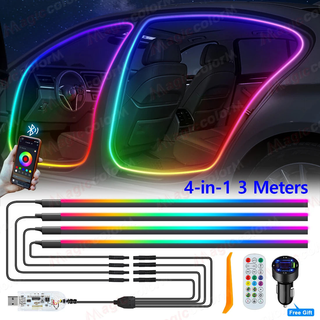 3Meters 4M Symphony Car Door Frame Ambient Lights Universal RGB LED Acrtlic Strips APP Bluetooth Remote Control USB Plug & Play