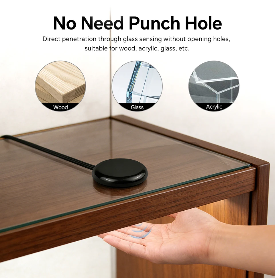 2.The touch sensor can sense the medium materials: wood plate, rock plate, stone, paper, acrylic, plastic, glass, and other non-metallic conductor materials