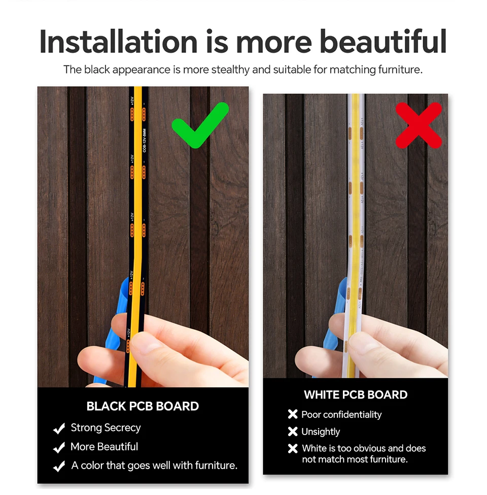 Touch Dimmable Black PCB LED Strip Light COB Tape For Walnut Acoustic Wooden Slat Grille TV Background Wall Panel&Cabinet Decor