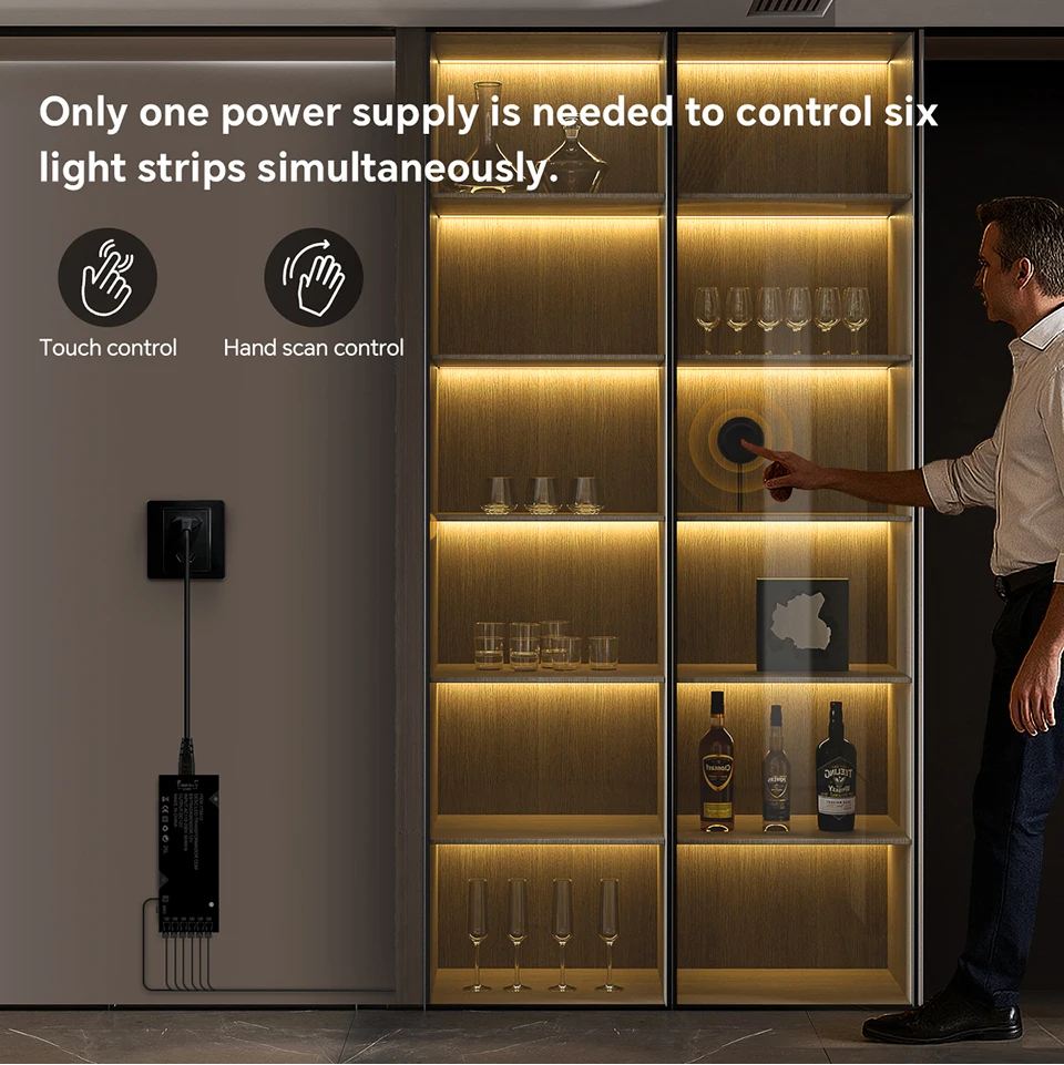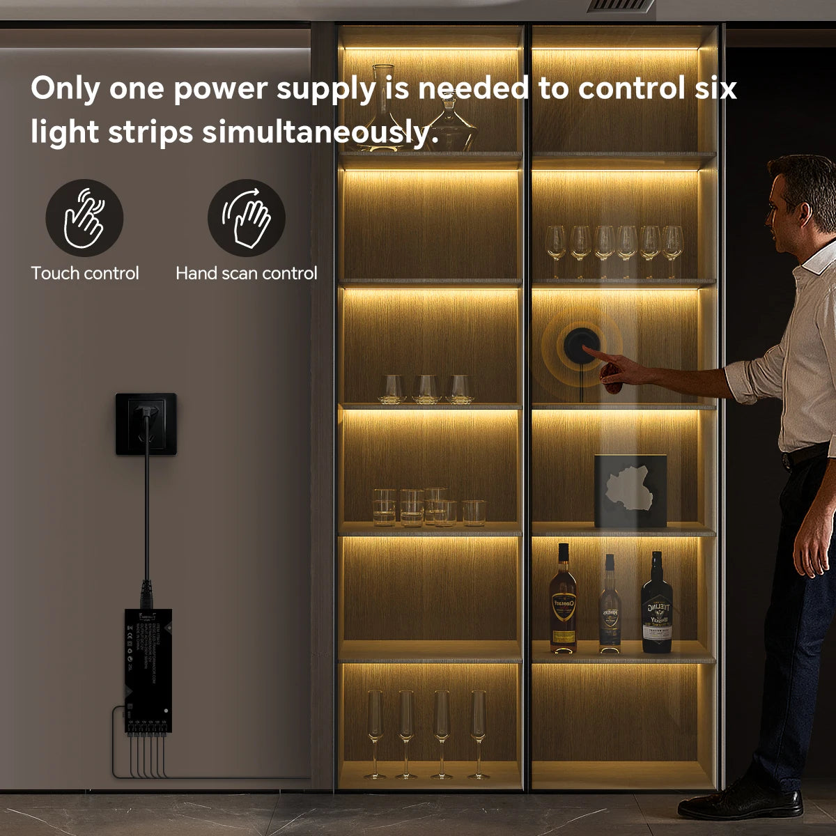 1.The Smart touch dimmer control sensor switch is used behind wood board (like kitchen cabinet ,wardrobe, closet..) or glass mirror. It can work on dc 12V led light, And it more flexible to stick anywhere you like,simple and easy to instation. DON'T NEED OPEN HOLE!!!