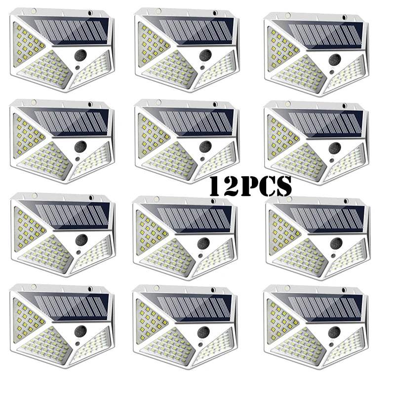 1-12 Pack Solar Lights Outdoor 100 LED Wall Lamp Motion Sensor Lights Waterproof Solar Street Light for Garden Porch Yard Garage