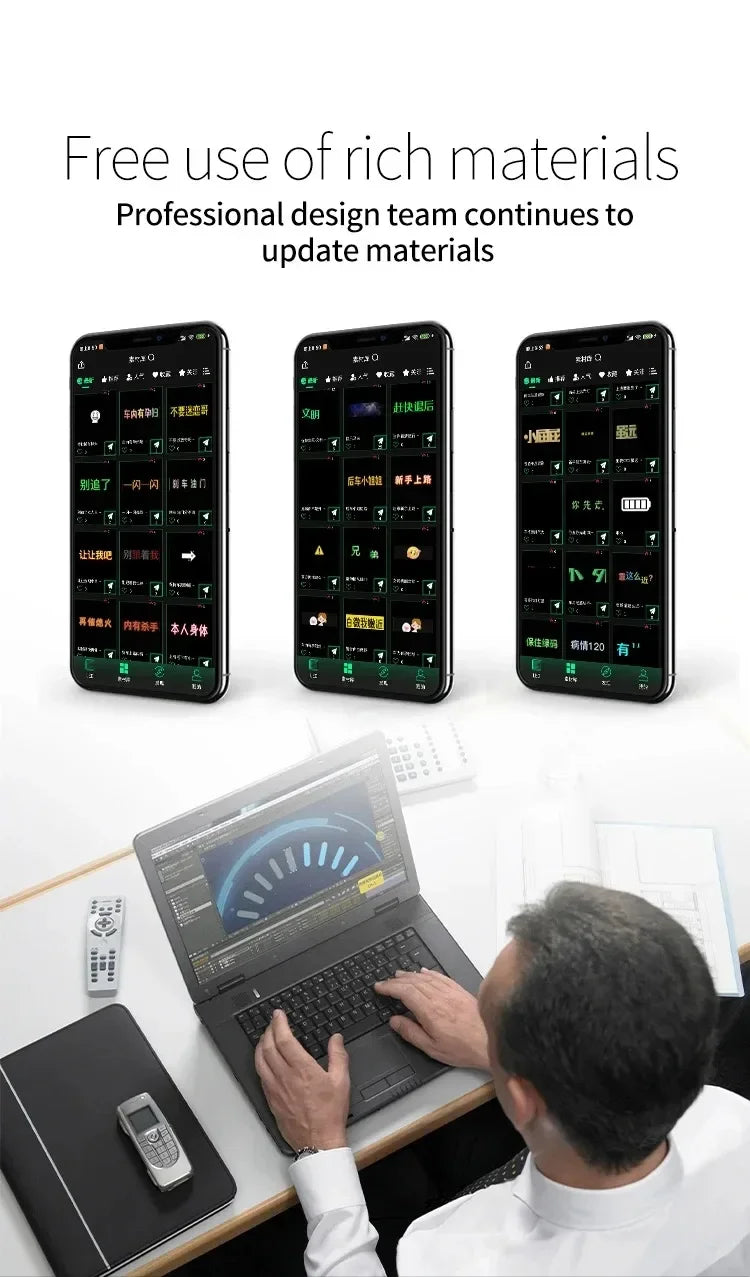 High-quality and High Brightness】This programmable LED sign for car windshield is a 16 X 64 pixel full-color LED display. The high-quality LED car sign can not only emit high-intensity light, but also has low power consumption, and the full-color effect is brighter and soft without glare.