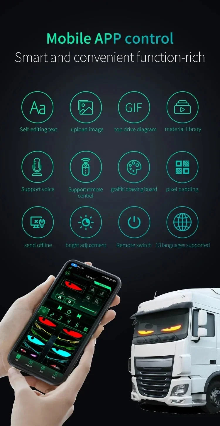 In addition to its innovative features, the Devil's Eye LED Car Windshield Screen Animation Screen Light promotes safer driving environments by providing high-resolution messages for drivers. The full-color LED display is designed to be highly visible without causing glare, making it suitable for day and night use.