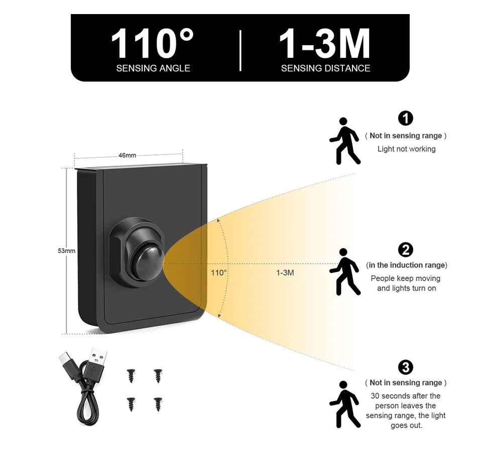 The Under Cabinet LED Strip Lights are an excellent addition to your home or office lighting setup. These versatile lights can be installed easily using the included 3M sticker, making them perfect for use in your kitchen, pantry, bedroom, wardrobe, or closet. With Portable PIR motion sensor, you can control the lights without ever having to touch them, And it more flexible to stick anywhere you like,simple and easy to instation.