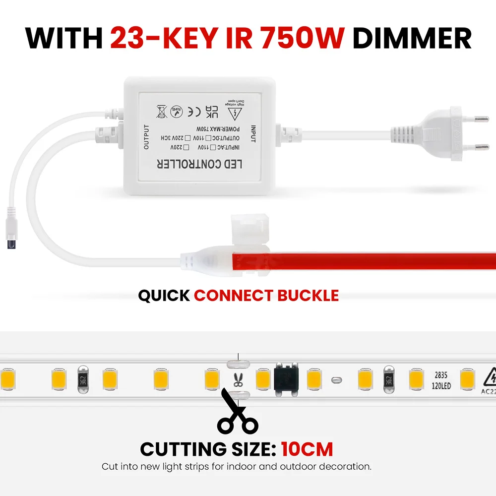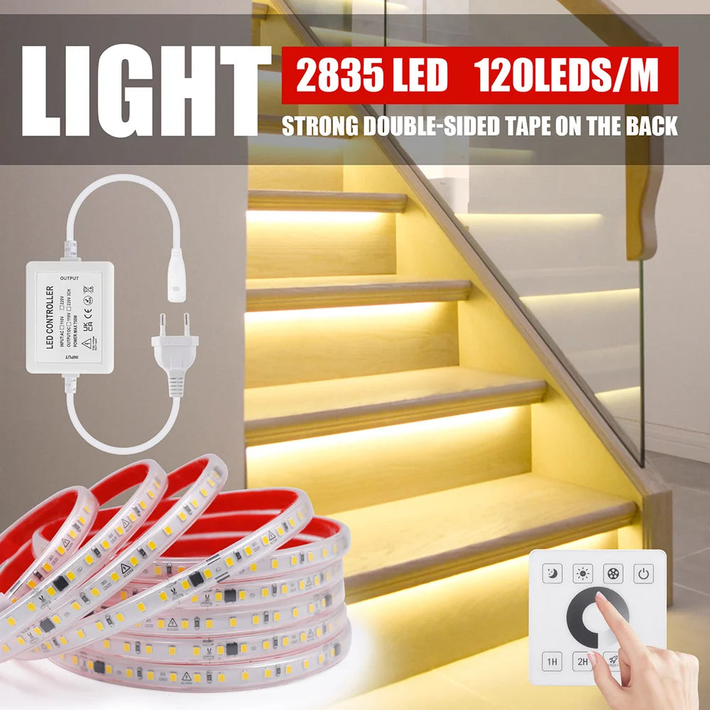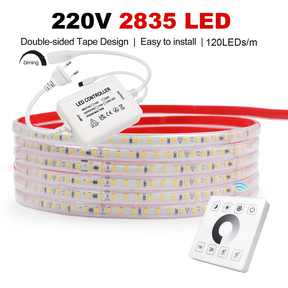 220V Wall Touch LED Strip Light Wifi Bluetooth Remote Control 23key Dimmer Power Kit 2835 120LED/m Flexible Led Tape Waterproof