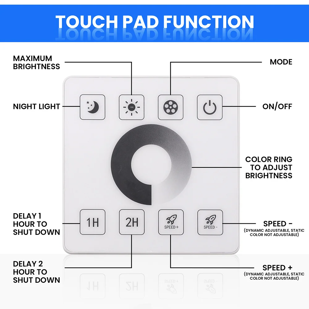 * Control type: Wifi APP/ Bluetooth APP/ 23Keys IR / Wall Touch RF remote control