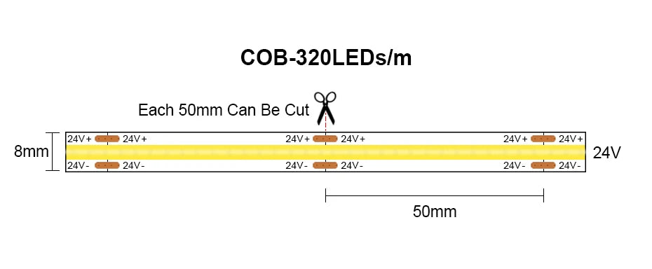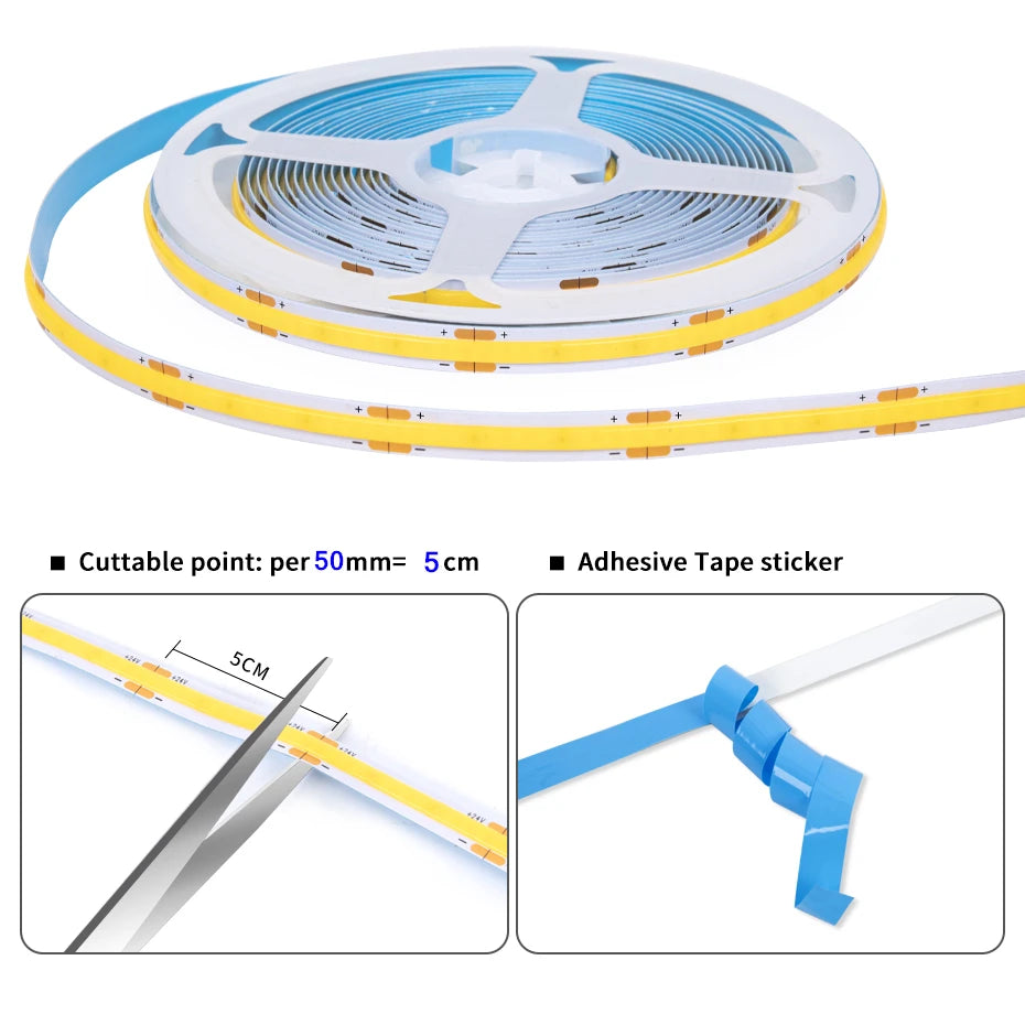 With a lifespan of 30,000 hours, this COB LED strip light is built to last, providing you with long-lasting, energy-efficient lighting. Certified with ROHS, LVD, and CE, you can trust in the quality and safety of this product.