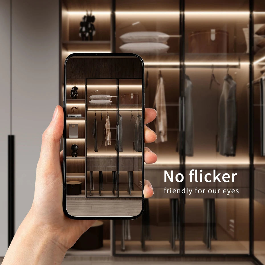 Designed for easy installation, this strip light is powered by DC 24V and comes with a touch sensor dimmer switch that can be placed behind wood or glass surfaces. The sensor can detect a variety of non-metallic materials, making it versatile and convenient to use.