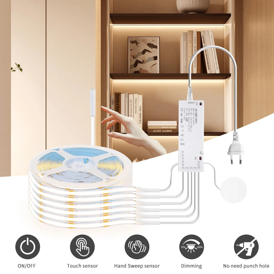 24V Under Cabinet Collection Display 320Leds COB LED Strip Light Wardrobe Closet Tape Lamp Dimmable Penetrable Wood Touch Sensor