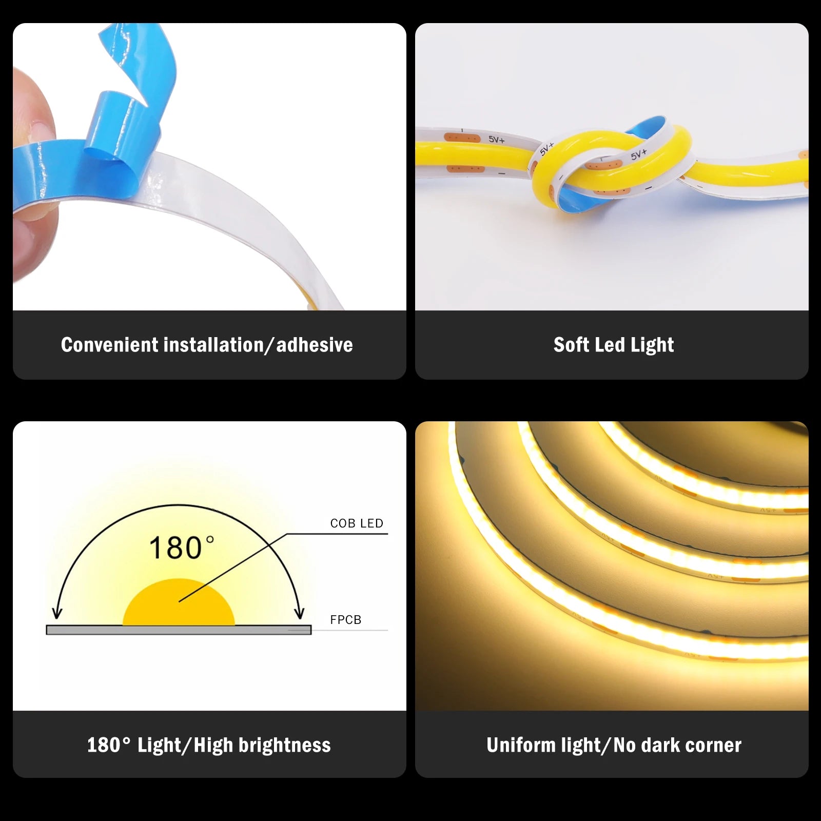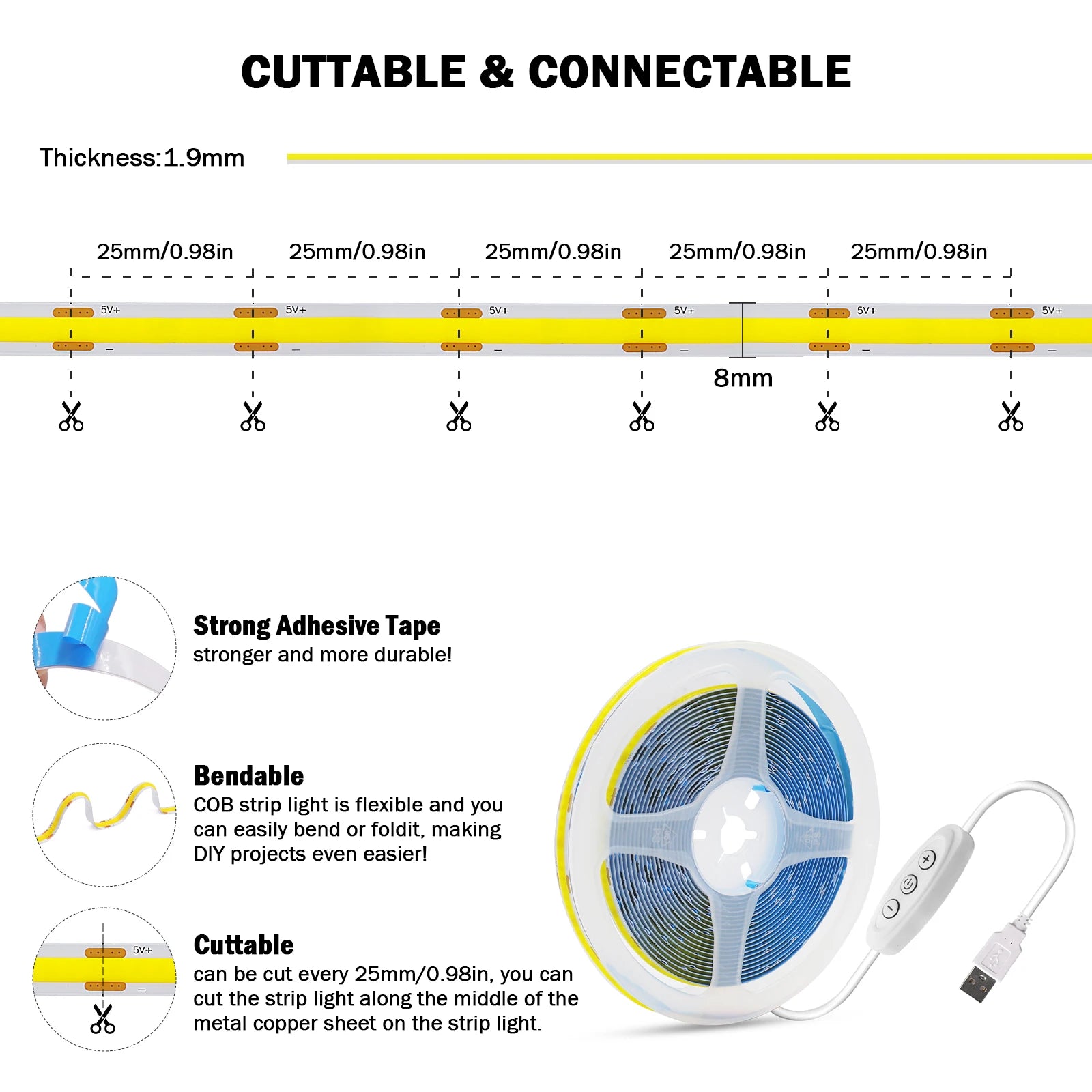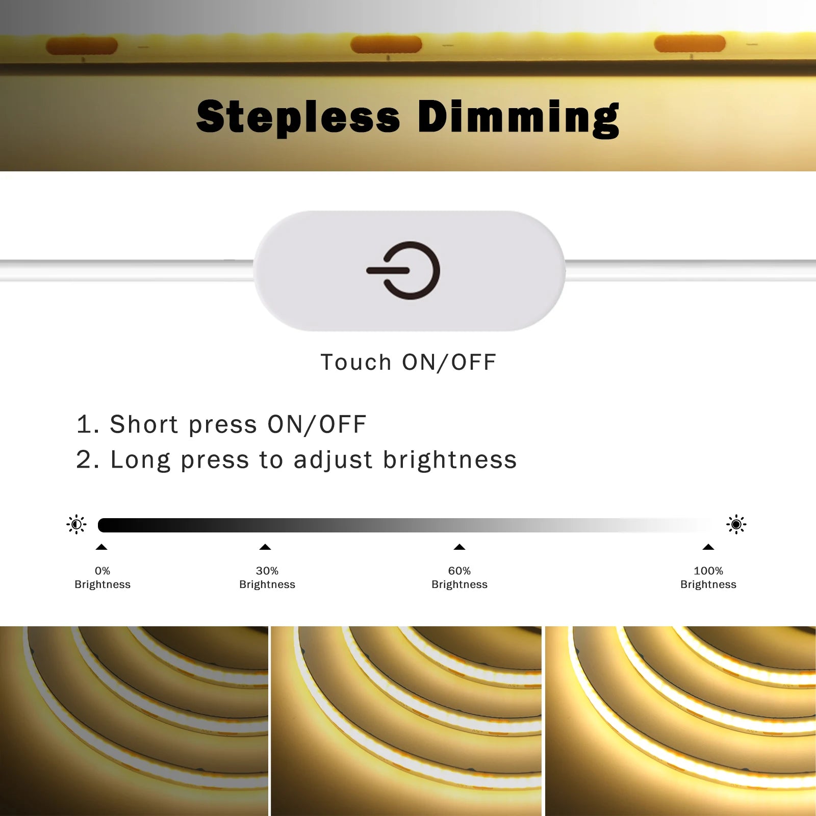 5V COB LED Light Strip With Touch Dimmer/ON OFF Switch