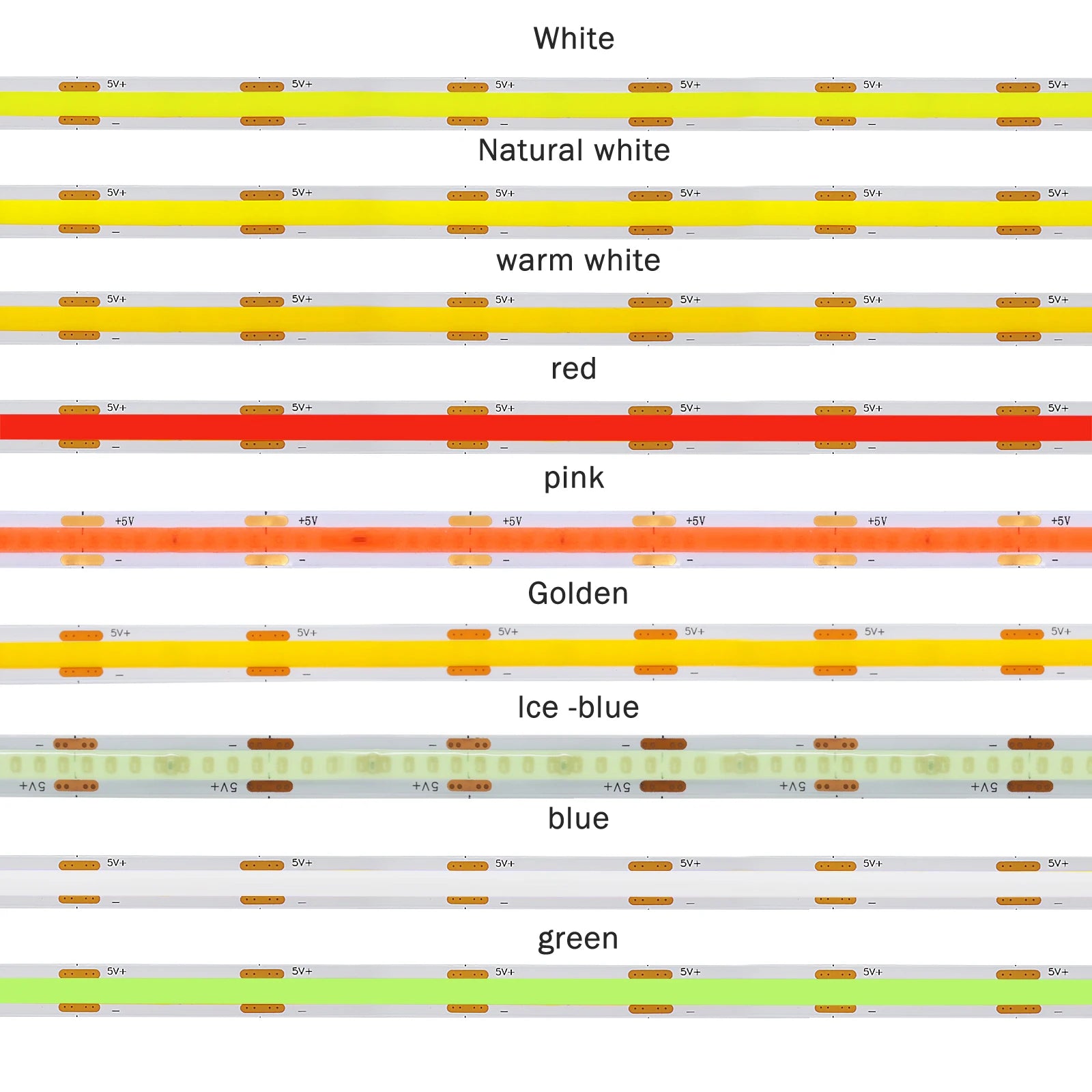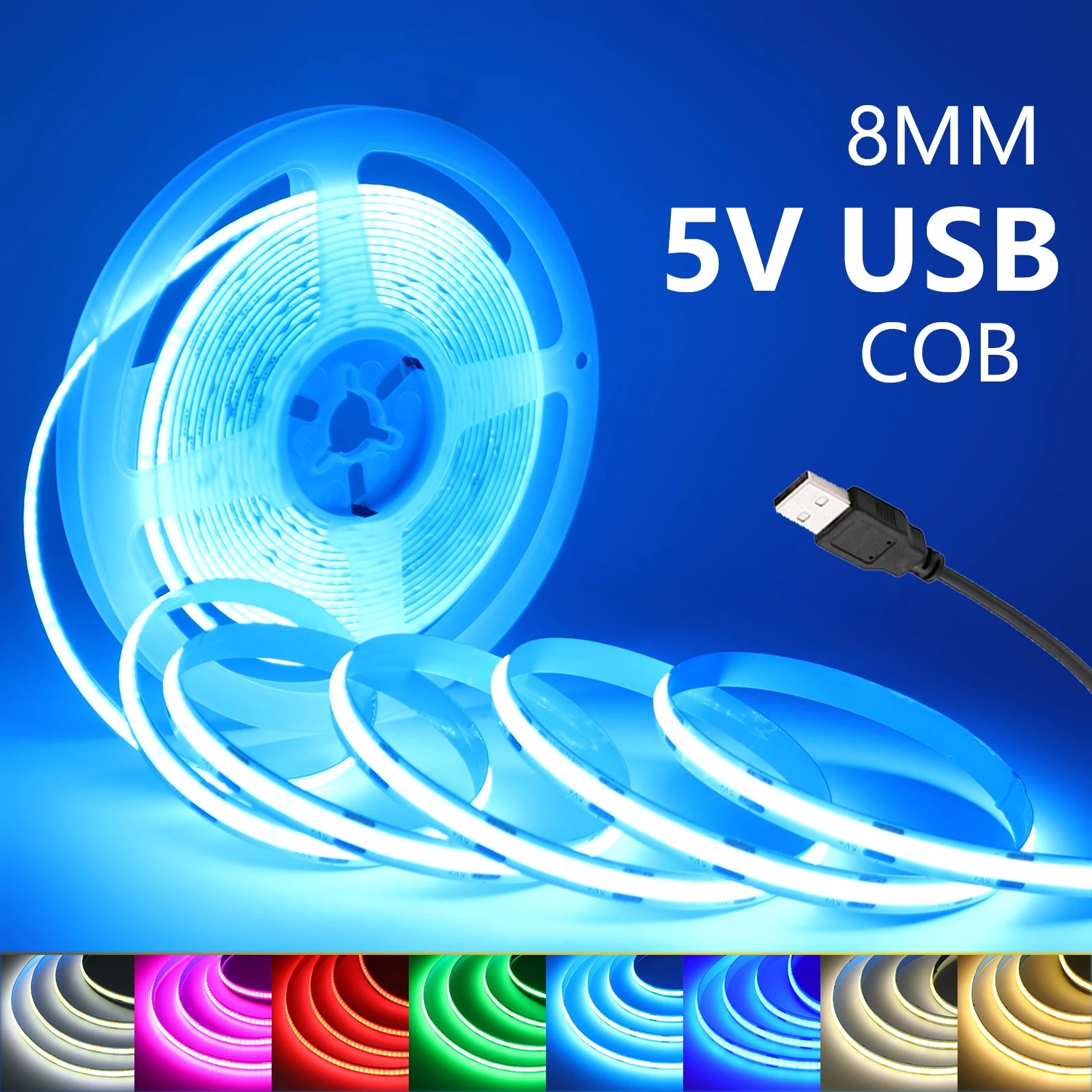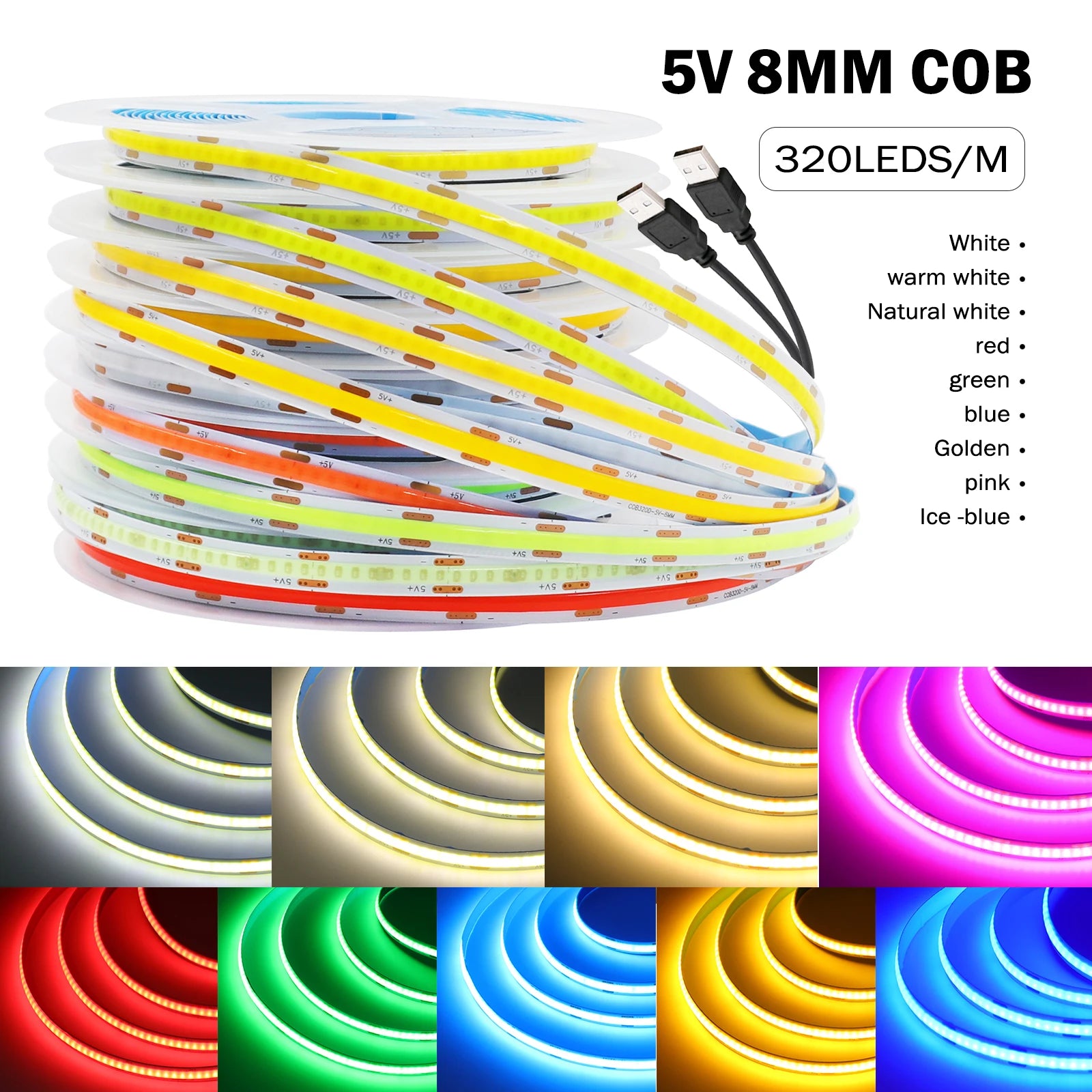 5V COB LED Strip High Density 320LEDs/m USB LED Light Red Green Blue Pink Ice Blue Warm White Flexible Led Tape TV Backlights