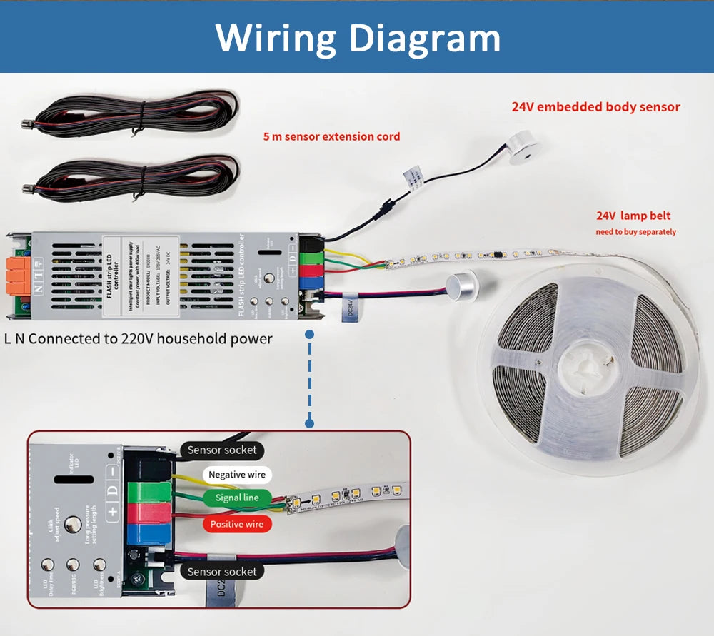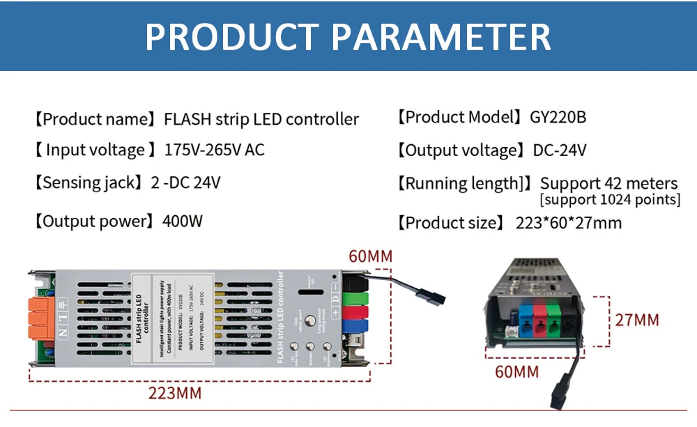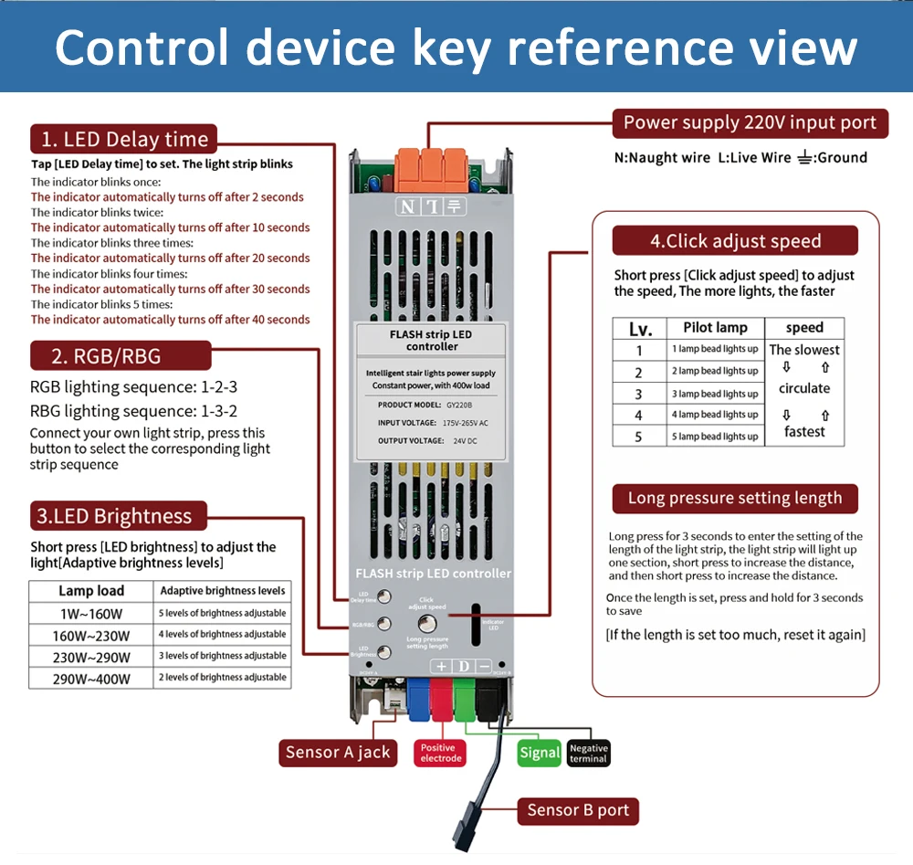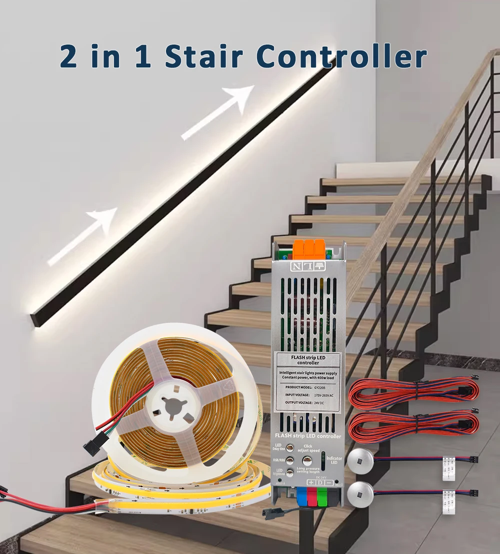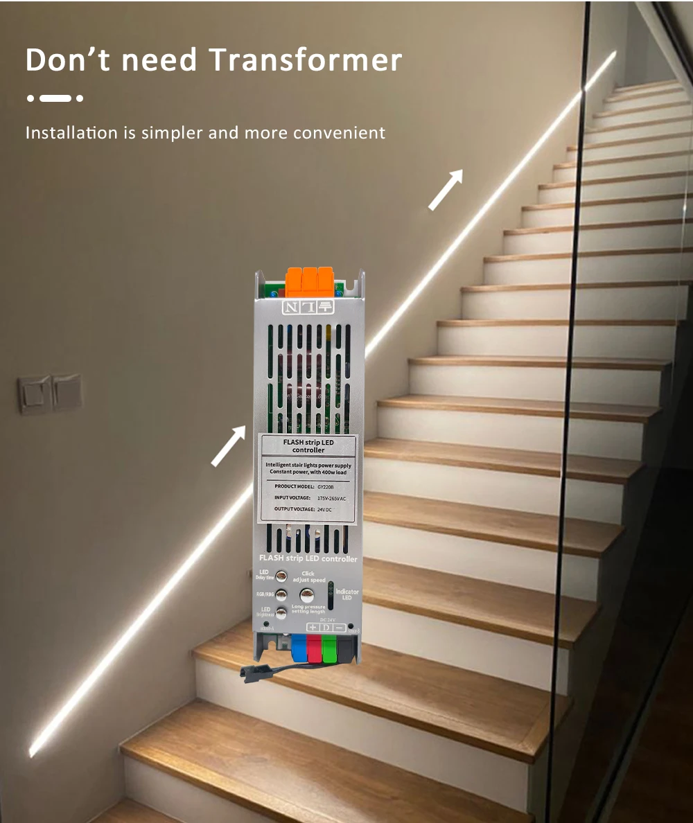 Design: 2 in 1 ( 24V 400W Power Supply + Stair Light Controller integration), installation is more convenient.