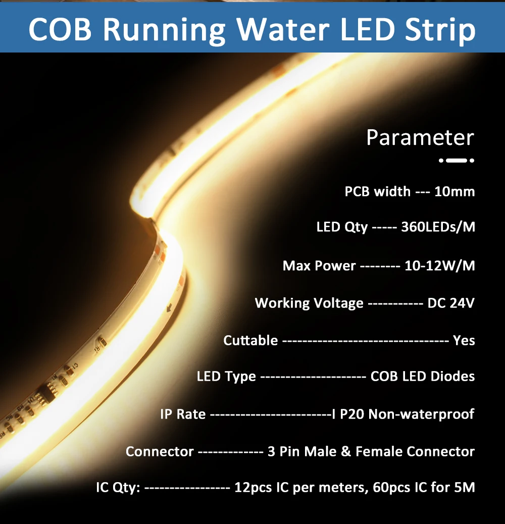1.  Compatiable Water Flow Led strip,you can buy in this link, The led strip in this link is tested well, working perfectly.