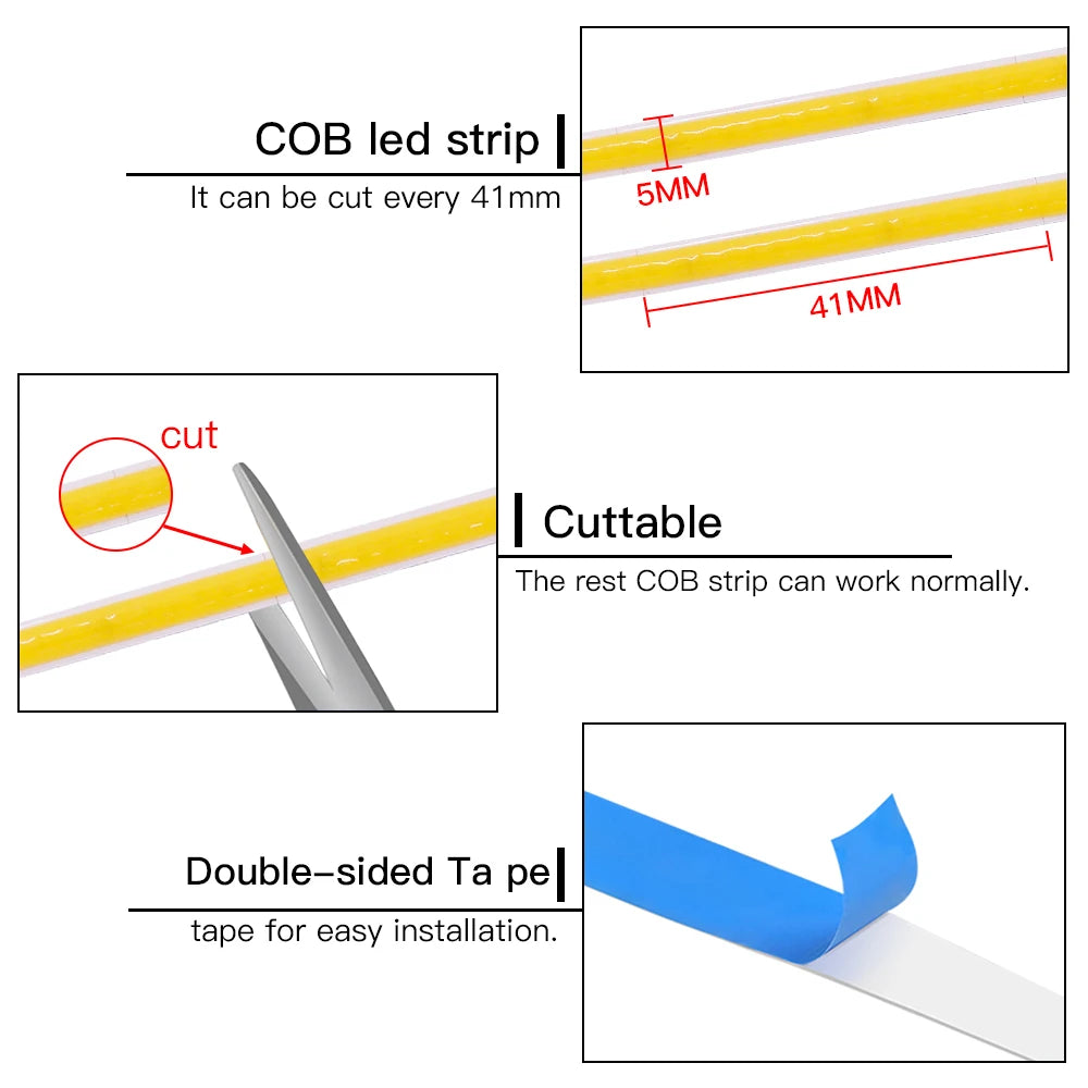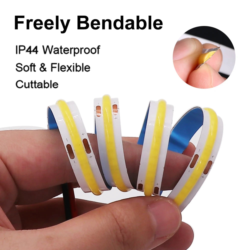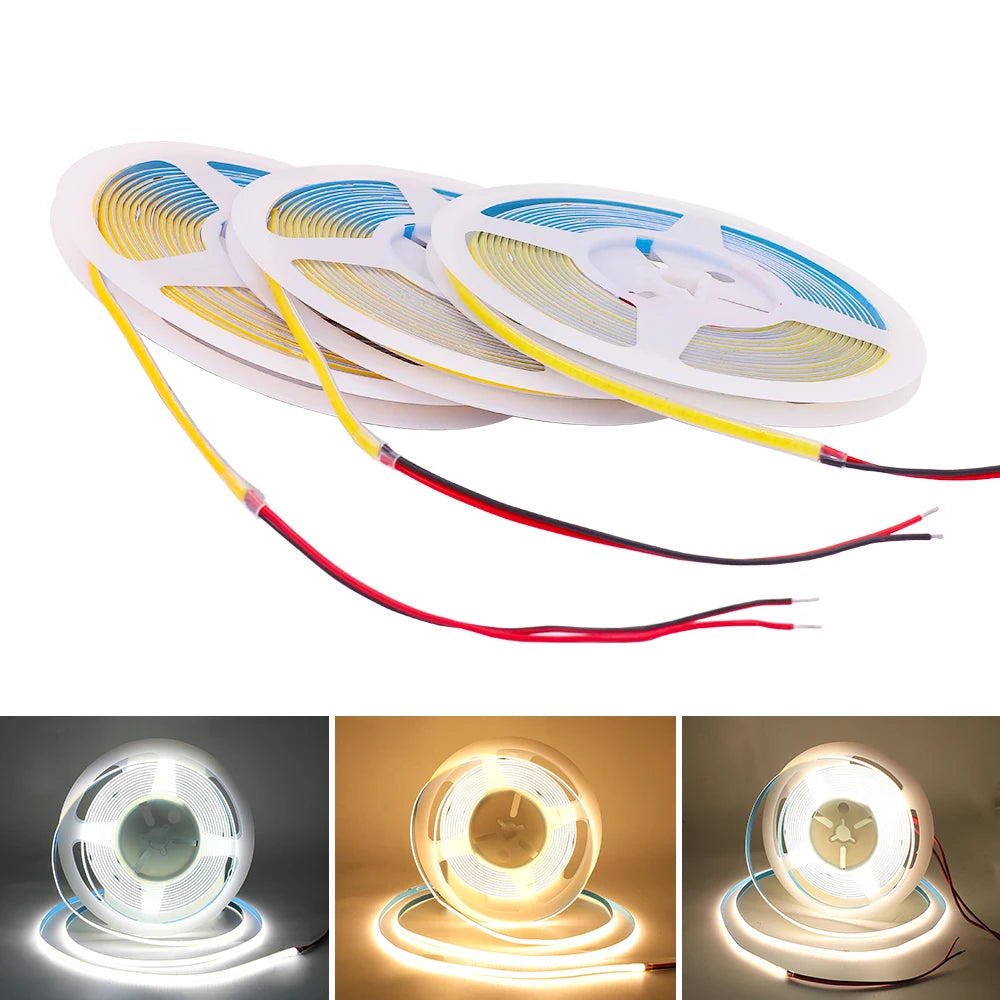 DC 5V 12V 24V COB LED Strip 320 384 480 528LEDs/m High Density Flexible COB LED Tape Light Bar 3MM 5MM 8MM PCB Linear Light