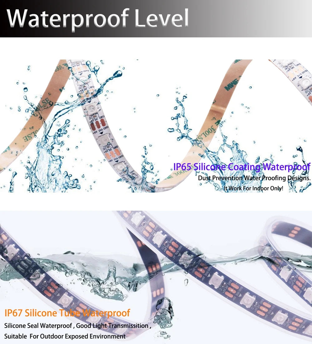 WS2812B Dream Color Strips Can Be Used For TV Hotel, KTV, Bar, Game Room And Other Leisure, Entertainment Decoration To Heighten The Atmosphere, Car Chassis, Car Decoration, Shop Decoration, Home Decoration And Other Decoration.