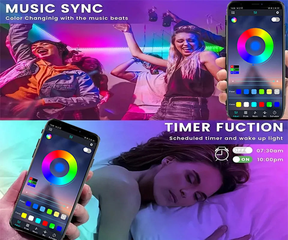 Note: The white light of RGB light strips is composed of three colors: red, green, and blue, which differ from pure white light.The picture and Video shows the 20-meter set.
