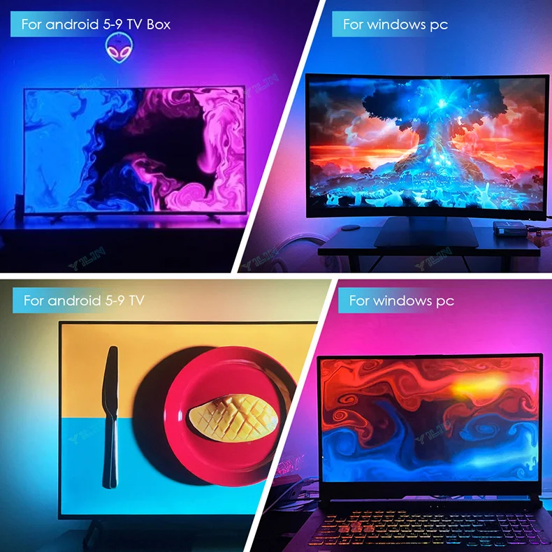 RGBIC LED Strip Immersive Computer Backlight PC/TV Monitor Screen Color Sync Light Strips Smart Software Control Ambient Lamps