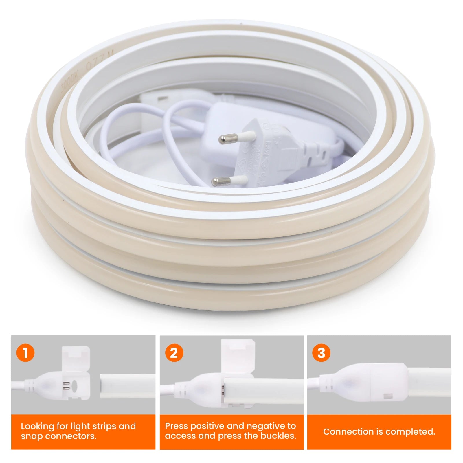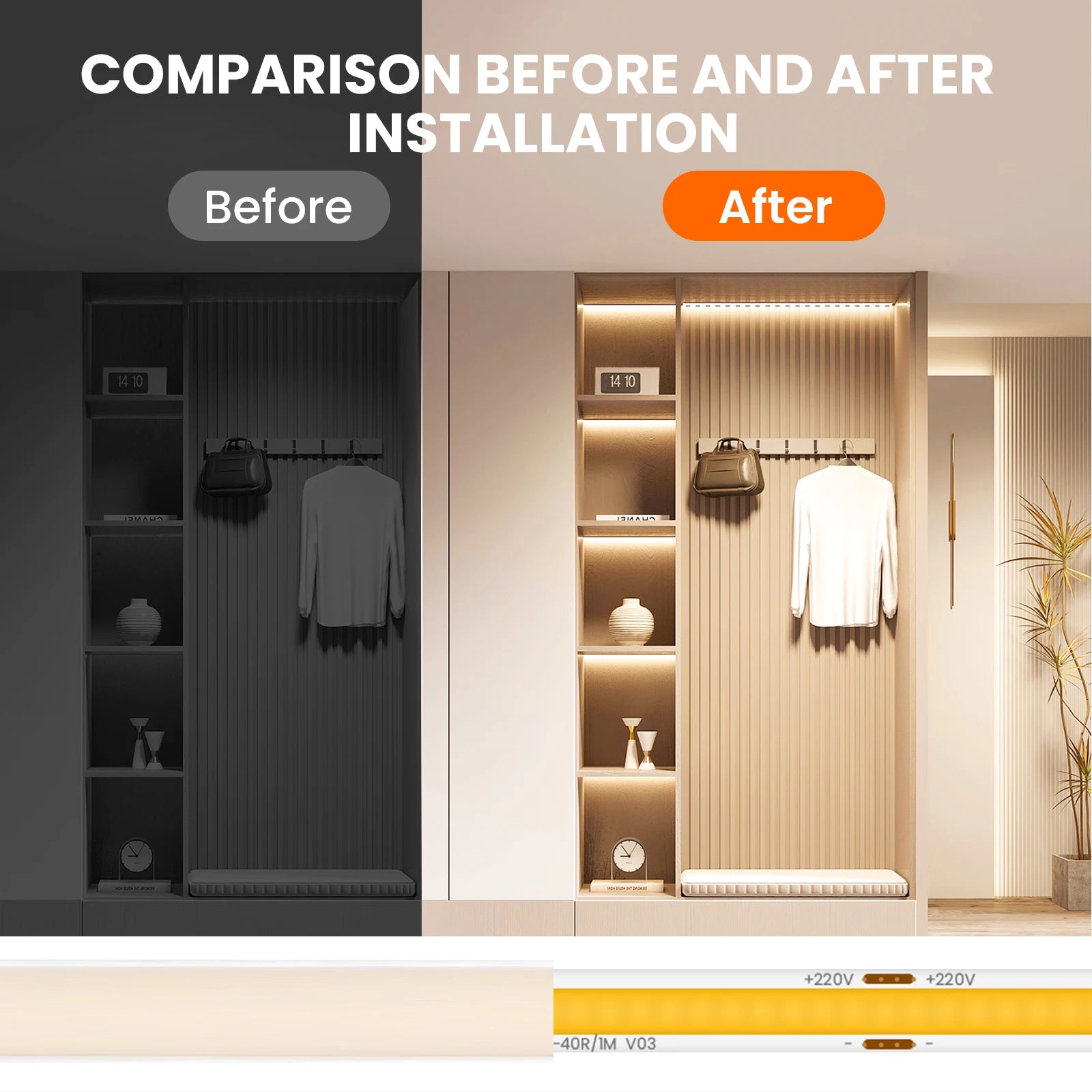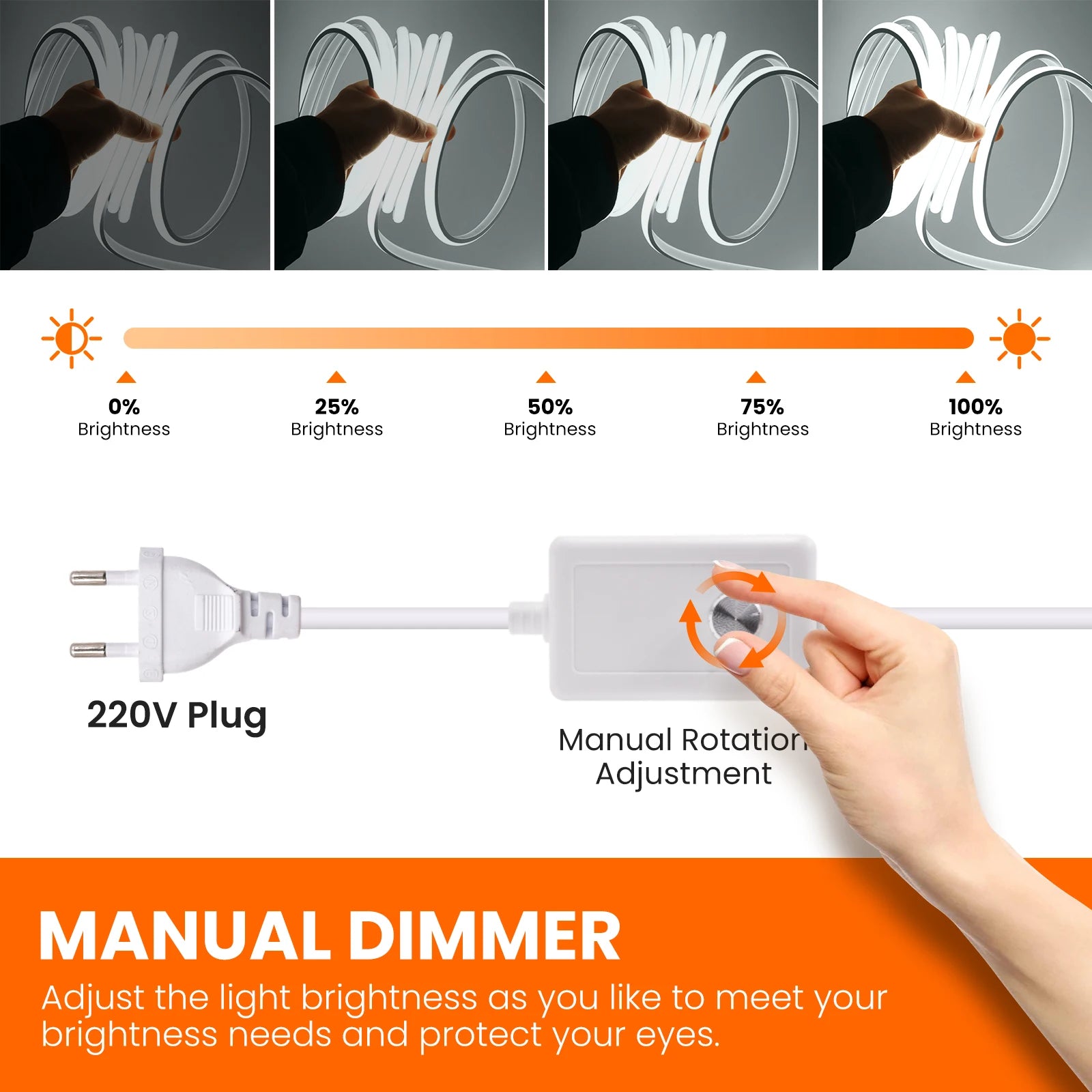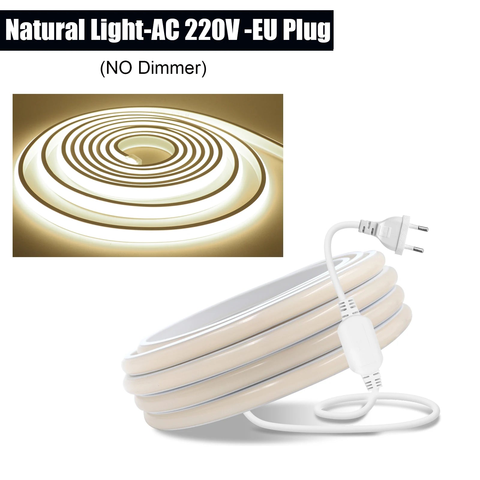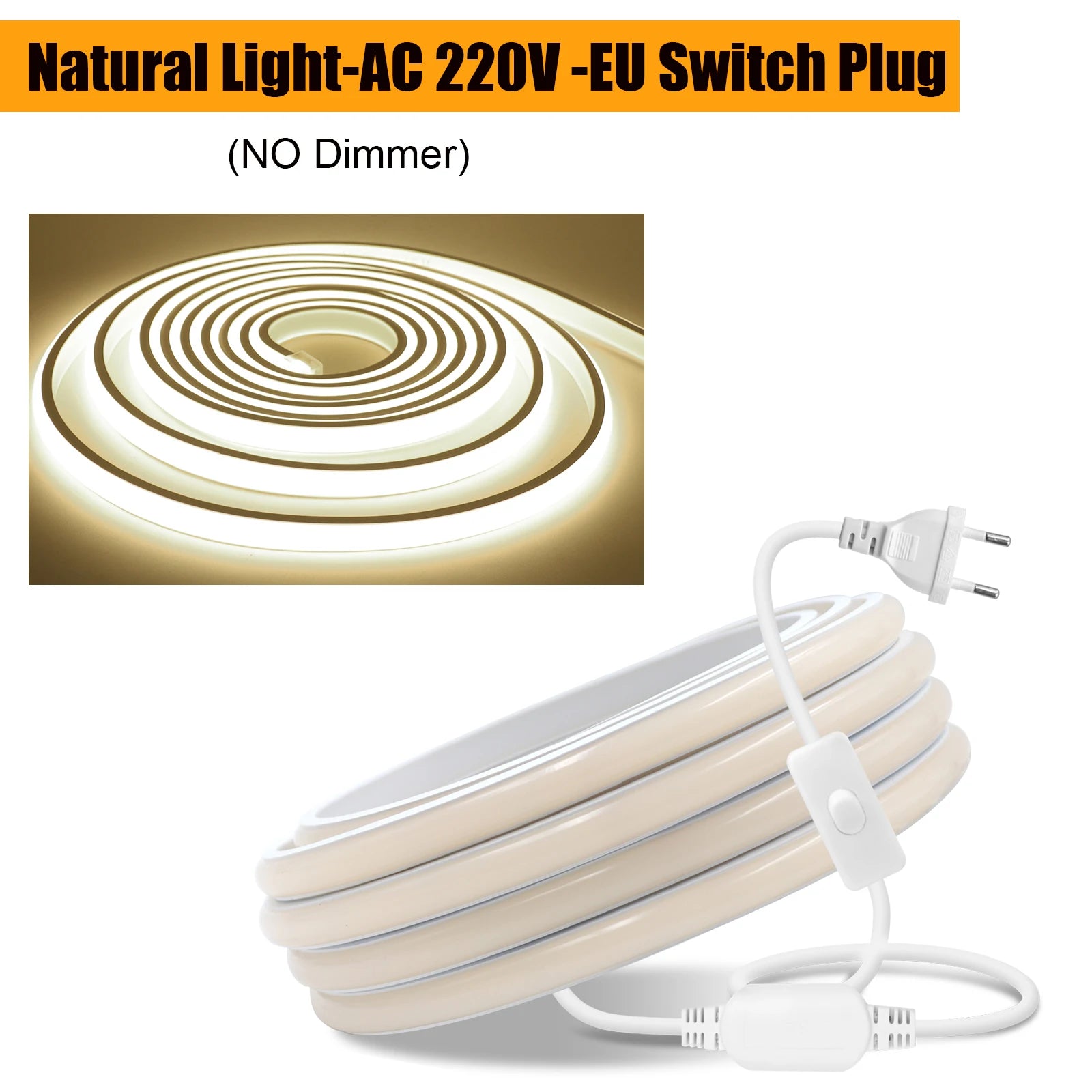 AC 220V Waterproof COB LED Strip Light With EU Switch Plug 3000K/4000K/6000K Dimmable Flexible Ribbon Neon Light for Home Decor