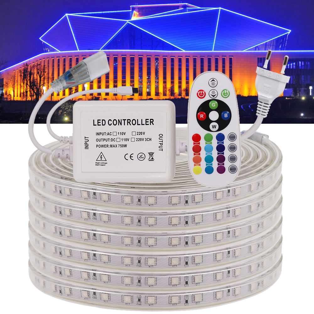Waterproof LED Strip EU 220V 240V Outdoor Decoration RGB /White/Warm White SMD 5050 60leds/m Flexible Tape LED Light Lamp