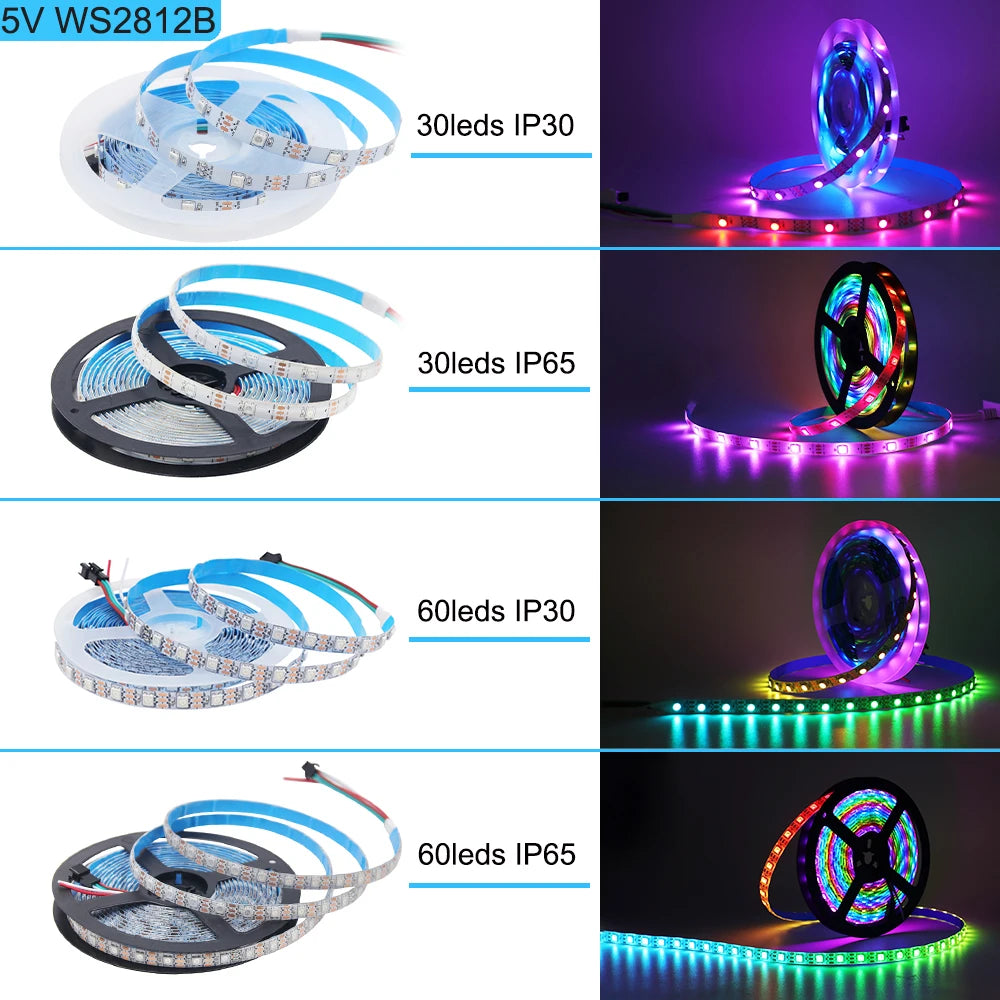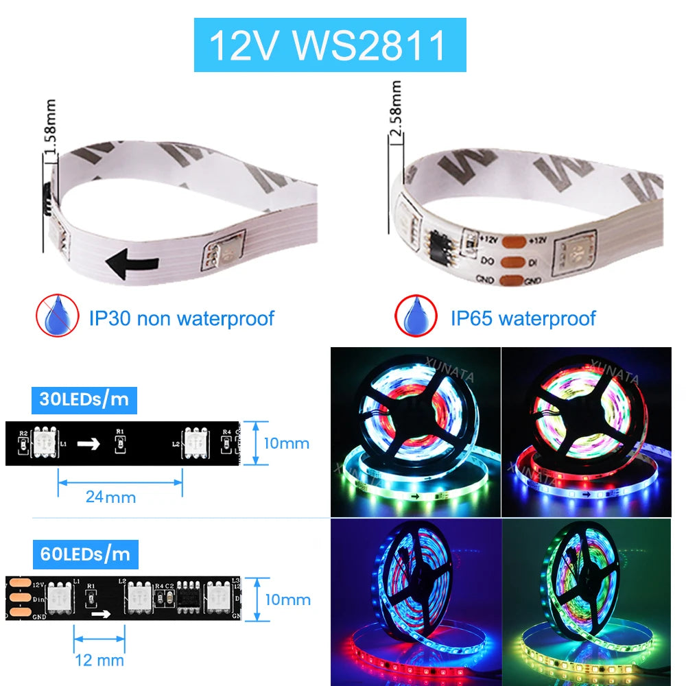 WS2811 WS2812B 5050 RGB LED Strip Light 30/60LEDs/m Smart Individually Addressable Pixel LED Tape IP30 IP65 DC5V DC12V for Decor