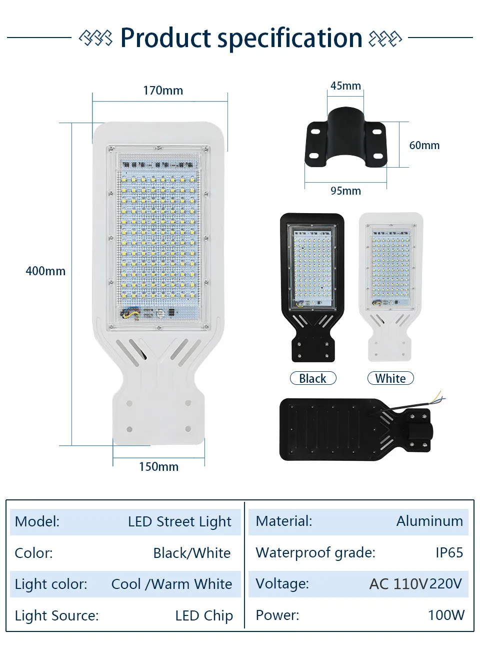 100W LED Street Light 110V 220V High Quality Outdoor Garden