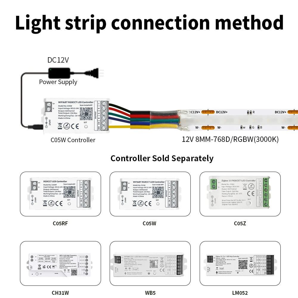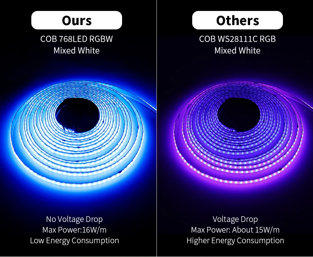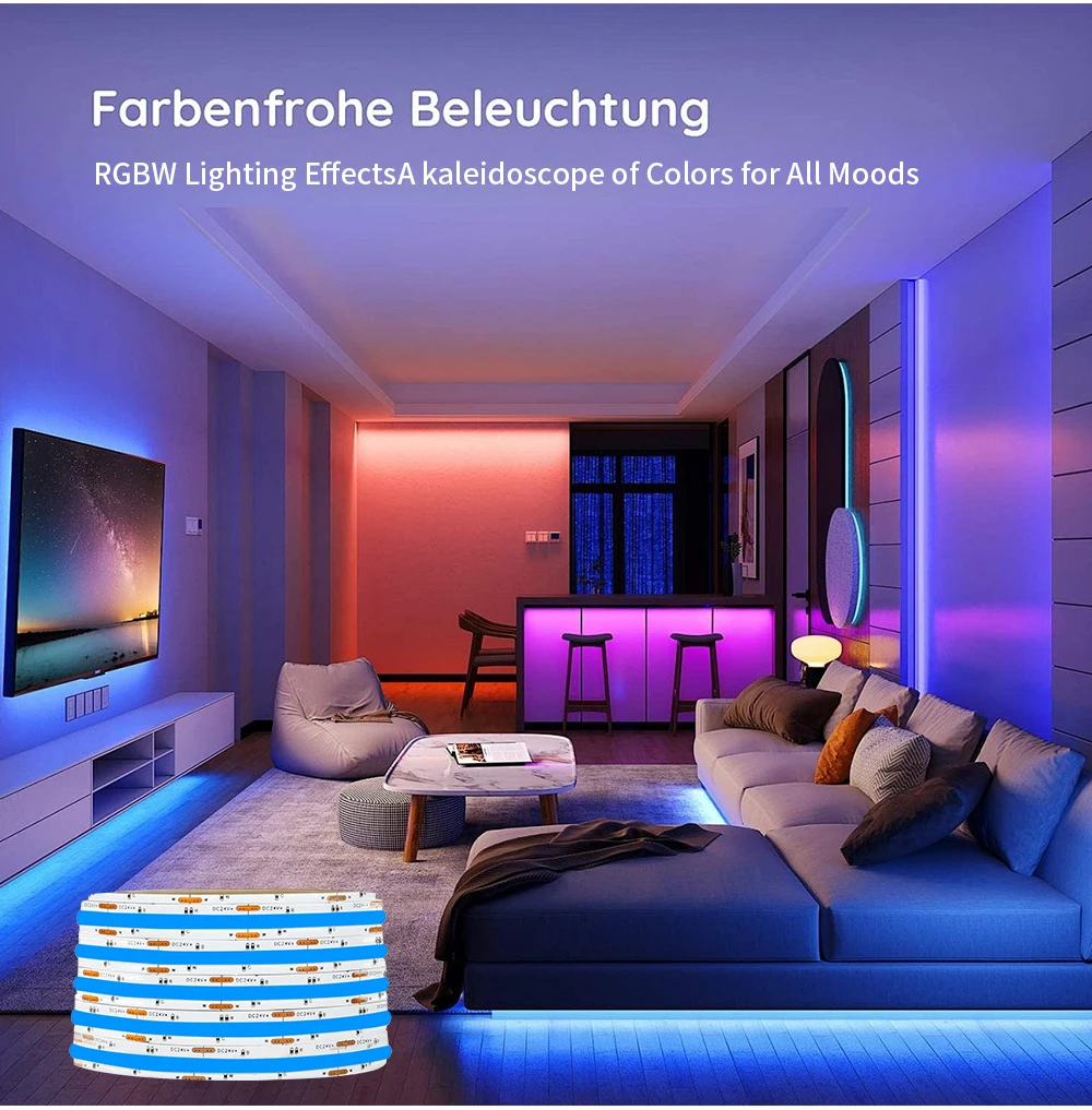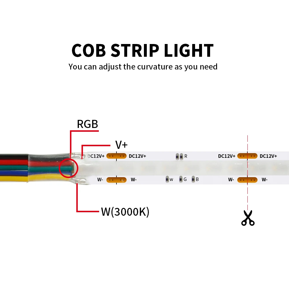 DC12V/24V RGBW COB LED Strip Light 8mm Ultra-Narrow