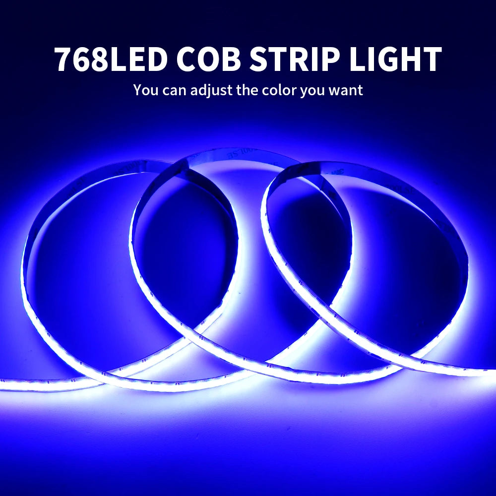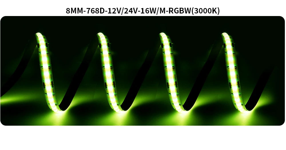 DC12V/24V RGBW COB LED Strip Light 8mm Ultra-Narrow 768Leds/m High Density FOB RGBWW Lights RA90 Linear Dimmable 16W 12V/24V
