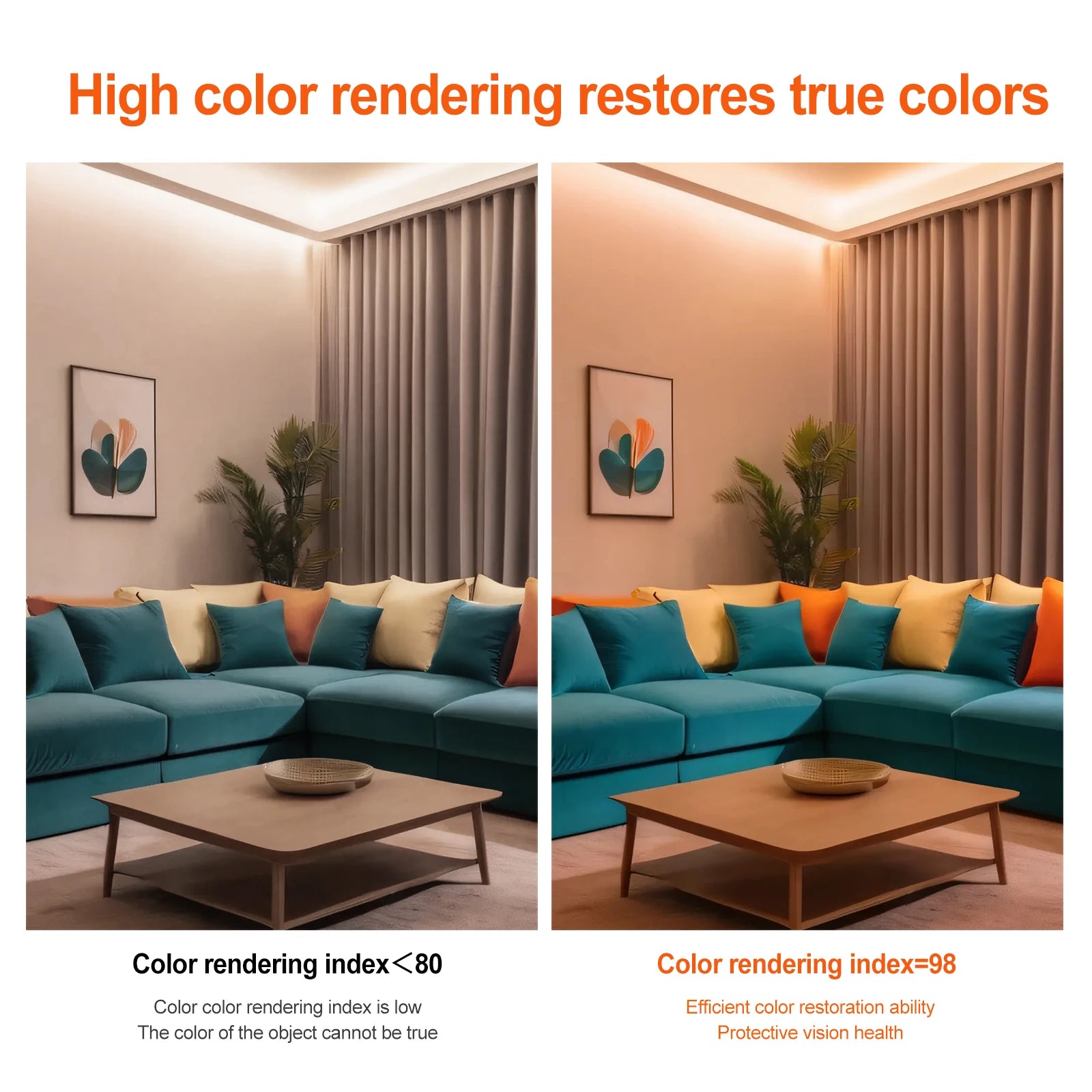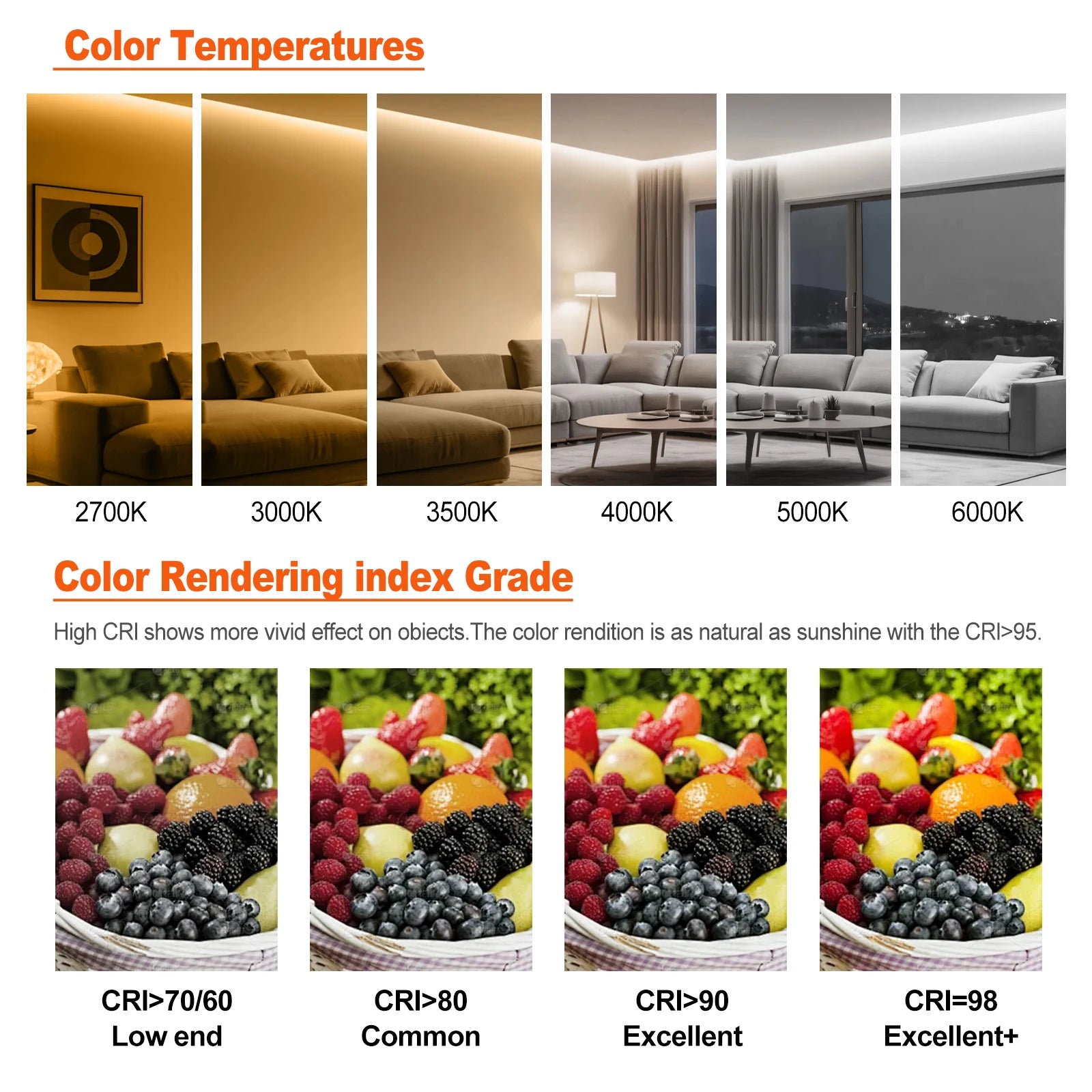 The full spectrum light strip with color temperatures ranging from 2700k to 6000k is ideal for creating a comfortable and well-lit environment. The high color rendering index ensures that colors appear true to life, making this strip perfect for tasks that require accurate color representation.