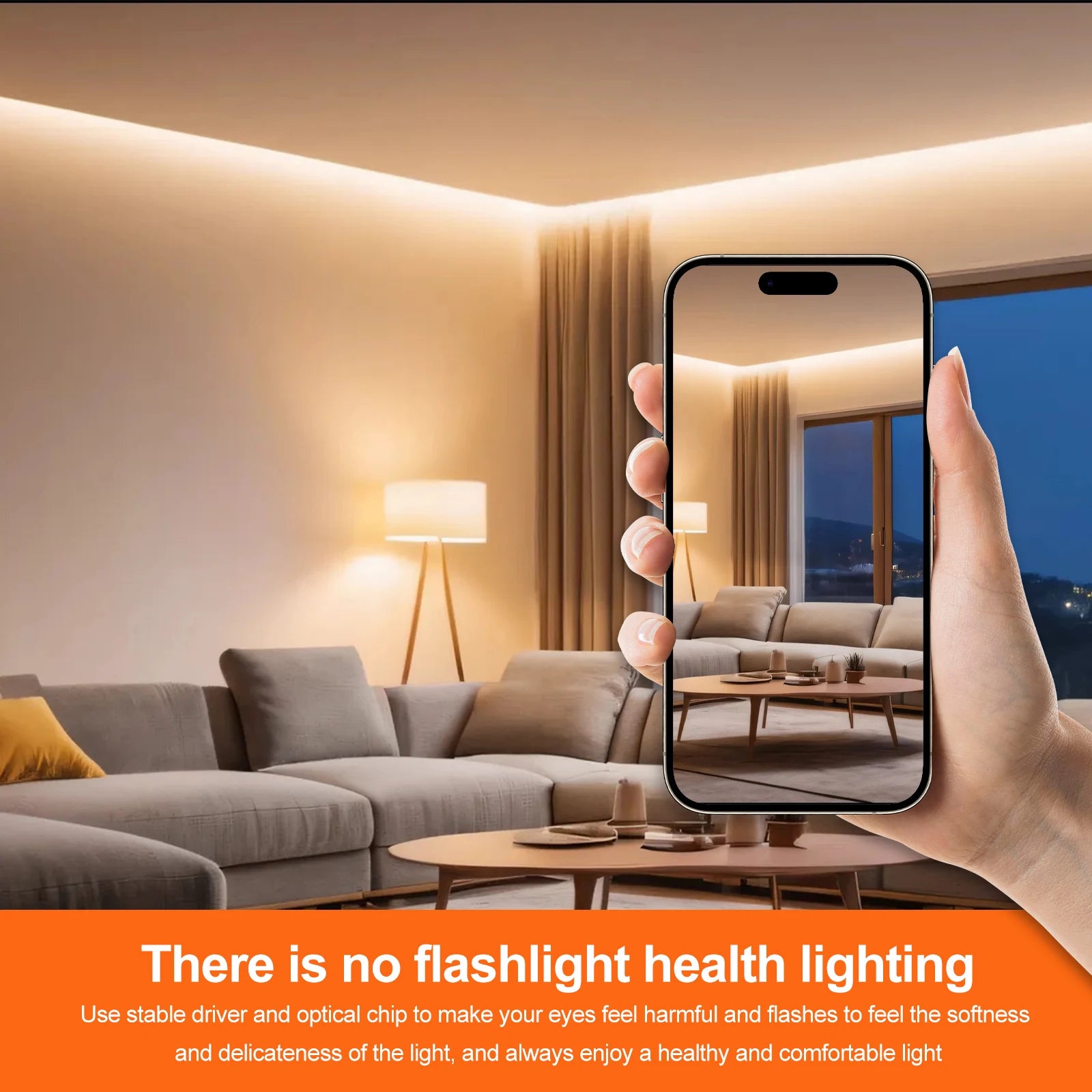 This is the full spectrum high brightness RA98 voltage drop free eye protection light strip, which protects the human eye and provides more realistic illumination for objects. This voltage drop free light strip has the same brightness from one end to the other.