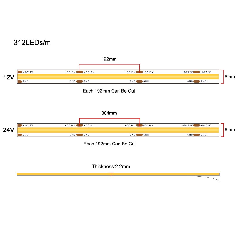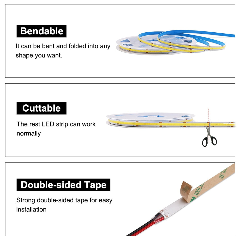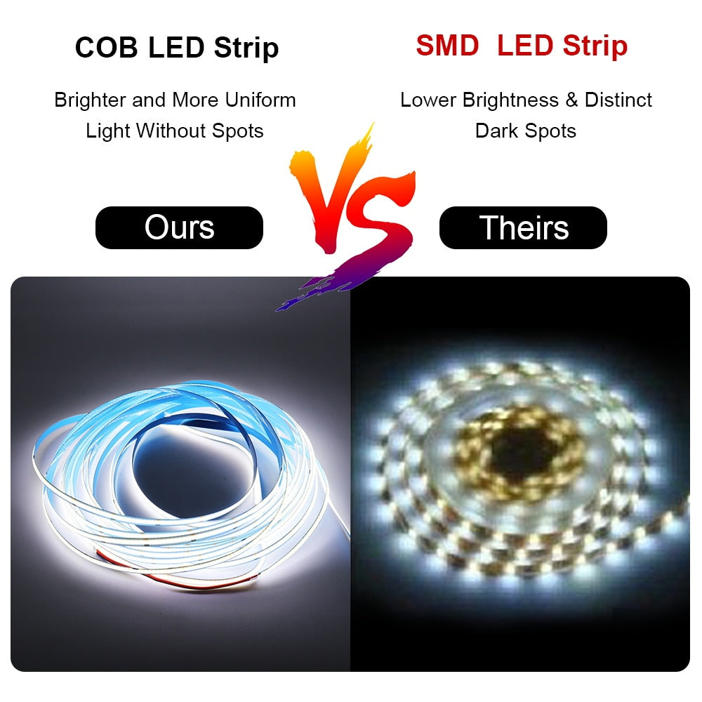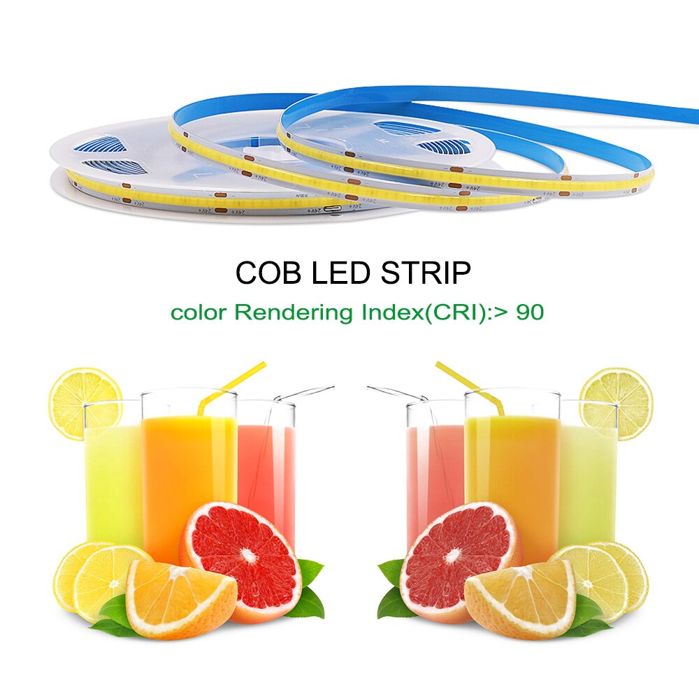 Flexible COB LED Strip Light 12V 24V 5m 10m Warm Natural Cold White 3000K 4000K 6000K RA 90 FOB LED Tape for Room Decor Lights