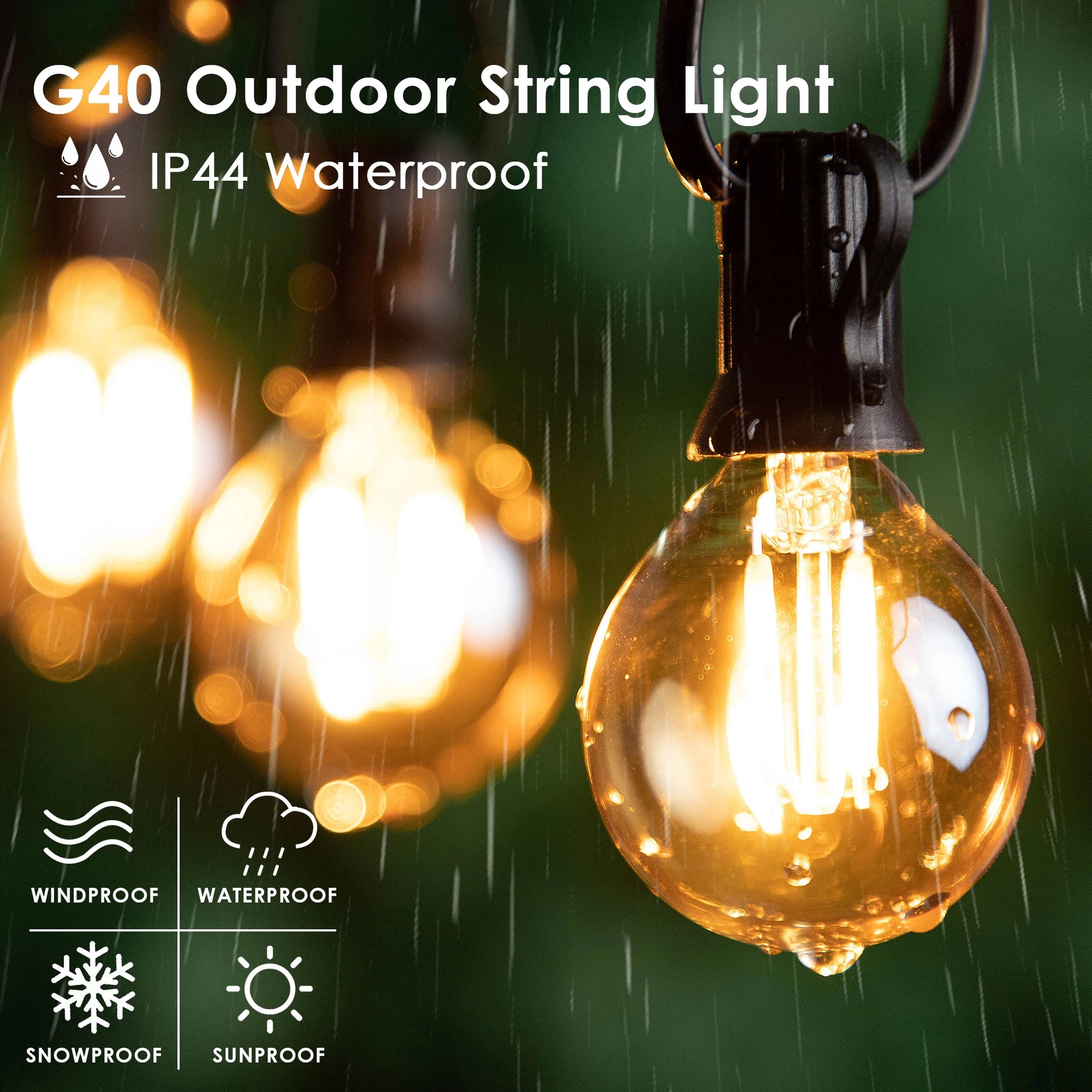 • 【IP44 Waterproof】Outdoor string lights is built with IIP44 weatherproof technology, which can withstand extreme temperatures, rain, wind, and damp climates.Waterproof globe string lights withstand all weather for year-round enjoyment.