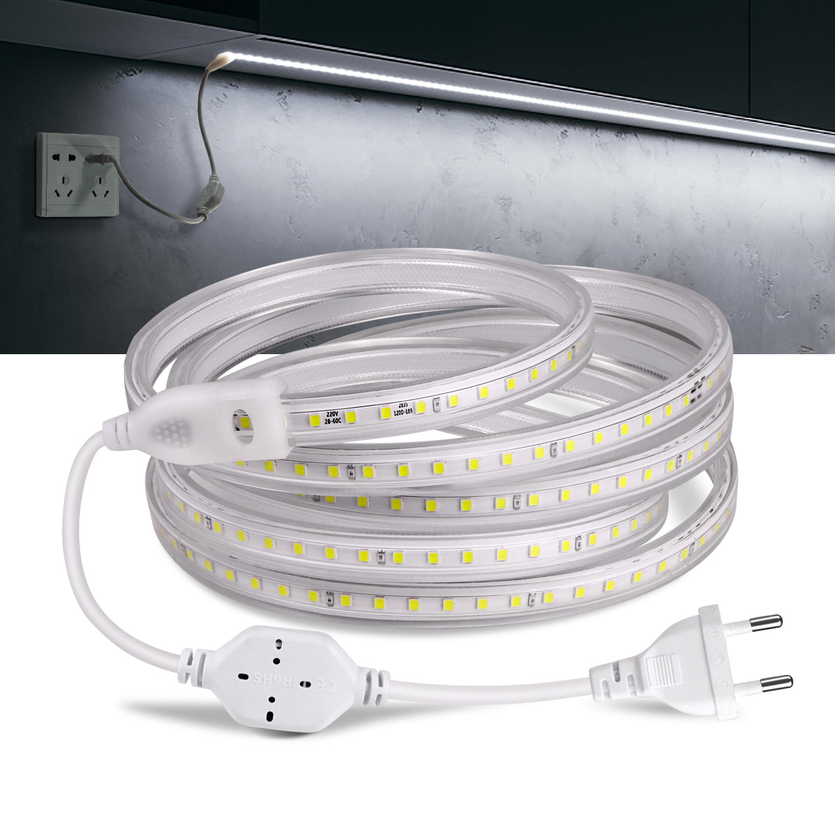 High Quality AC LED Strip Lights Flexible Outdoor Lamp Waterproof LED Tape With EU/US Power Plug