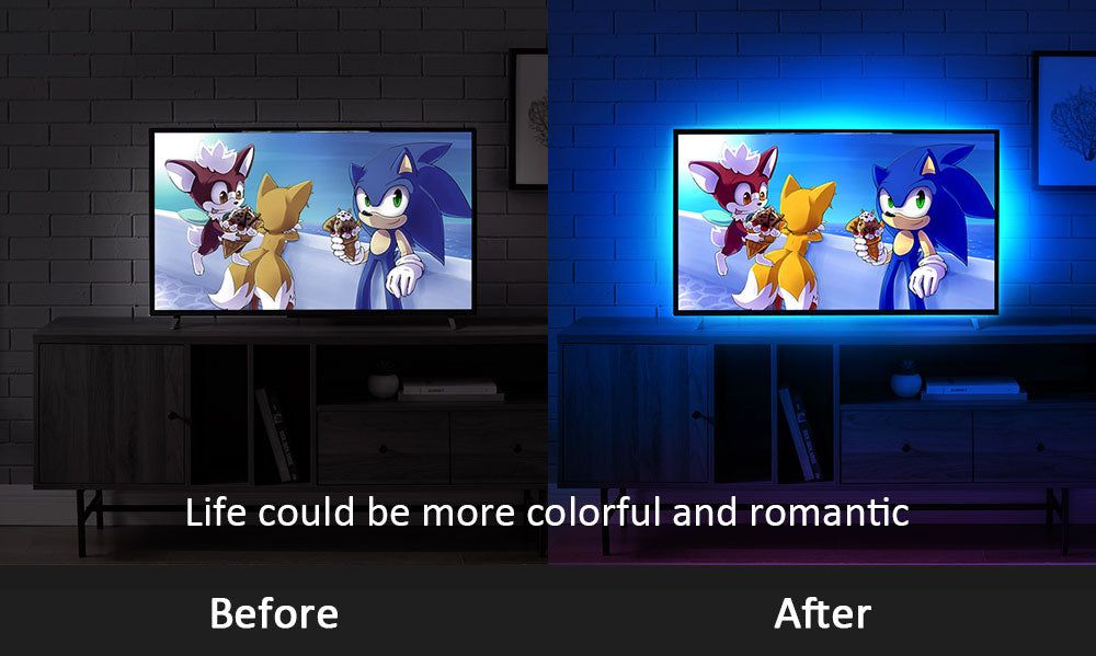 Add some colorful ambiance to your living room with our LED strip light with Bluetooth APP control. This strip light is perfect for adding a pop of color to your TV background or for decorating during the holiday season. With 16 multicolor options, you can choose any color you want to fit your mood or decor. Our "Happy Lighting" app allows you to easily control the colors, brightness, and lighting modes from up to 15 meters away.